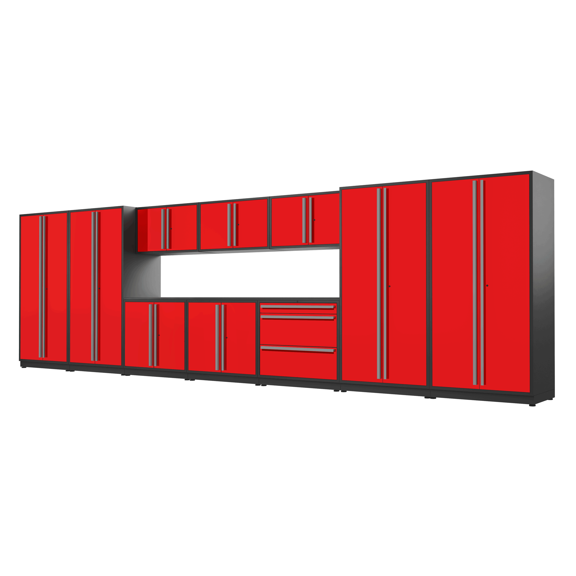Newage Products Bold 3.0 Series 10-Piece Garage Cabinet Set, Red / Bamboo Worktop / None