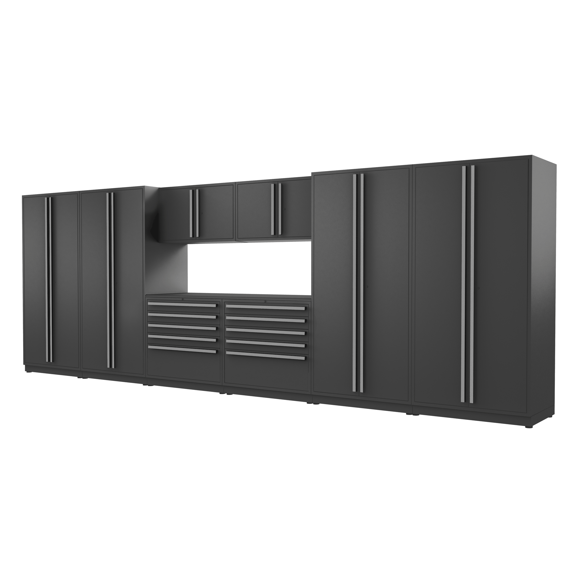Newage Products Pro 3.0 Series 10-Piece Garage Cabinet Set With 3X Multi-Use Lockers, Grey / Stainless Steel Worktop / None