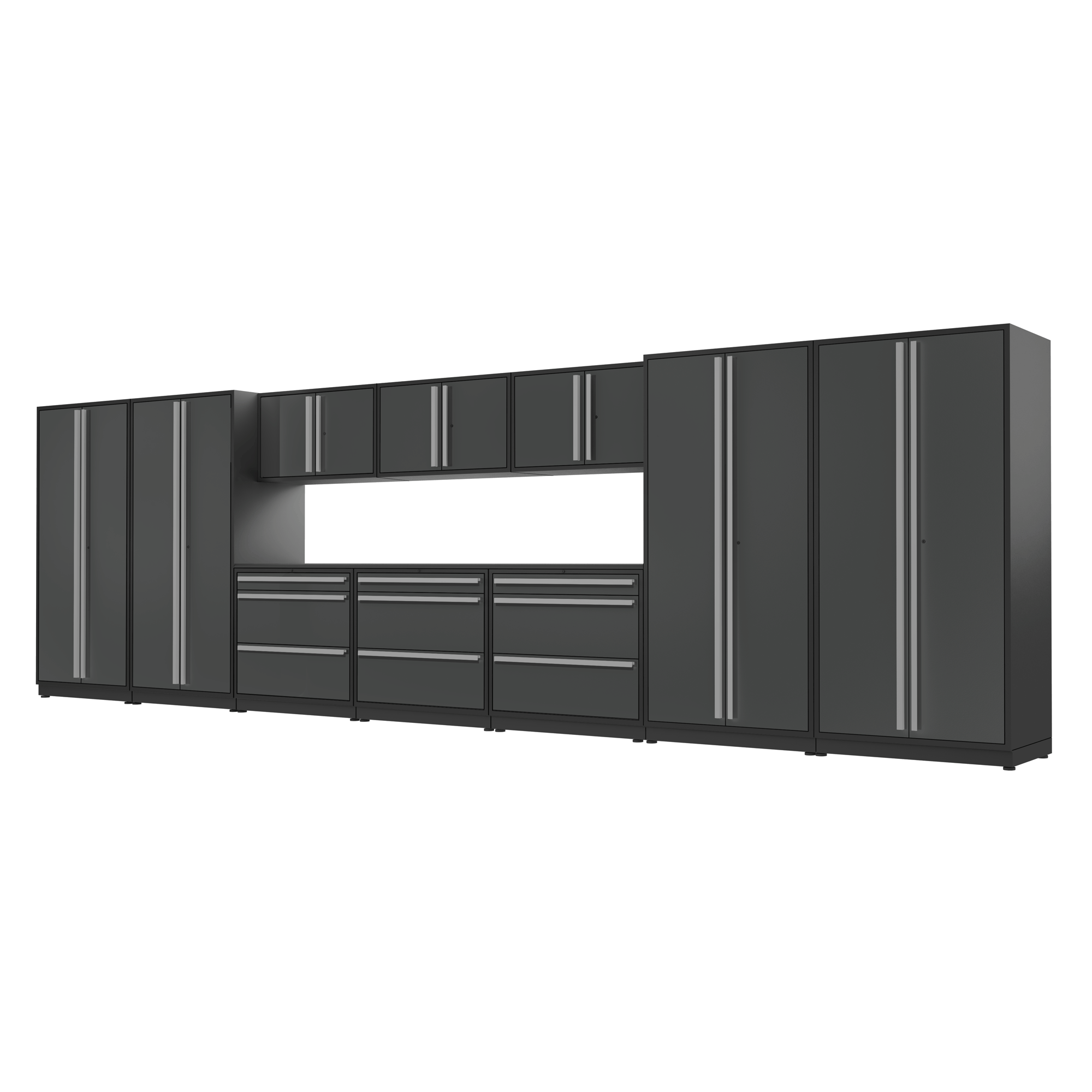 Newage Products Pro 3.0 Series 16-Piece Garage Cabinet Corner Set, Grey / Stainless Steel Worktop / None