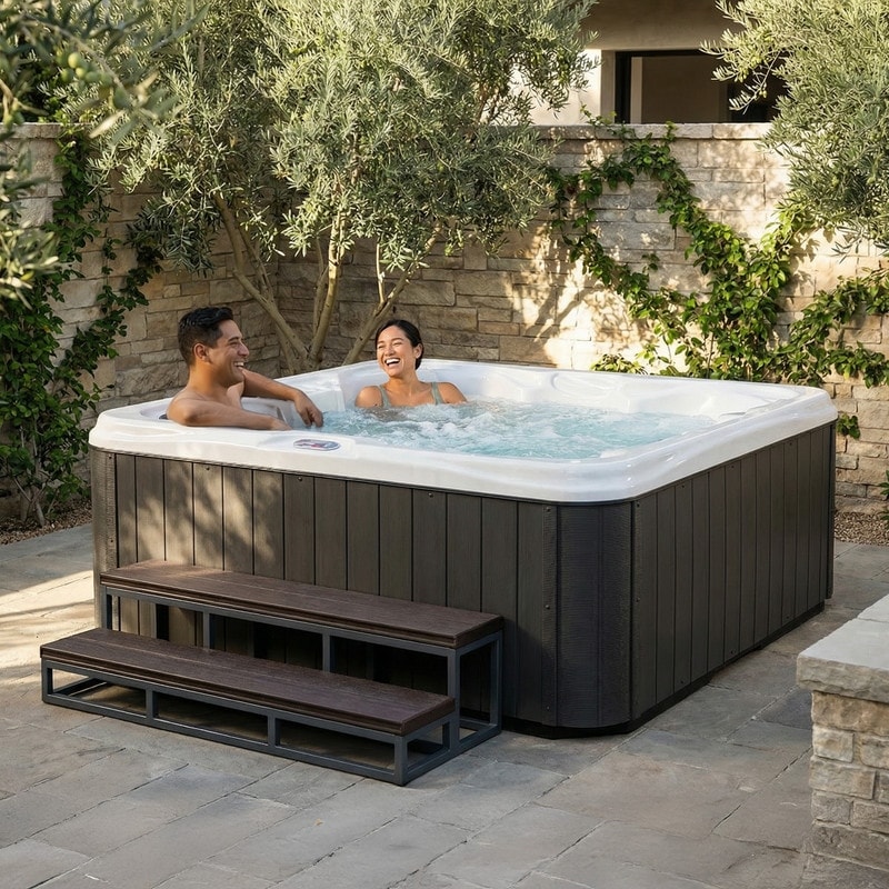 American Spas 7-Person 100-Jet Premium Acrylic Bench Spa Standard Hot Tub with Sound System and LED Waterfall