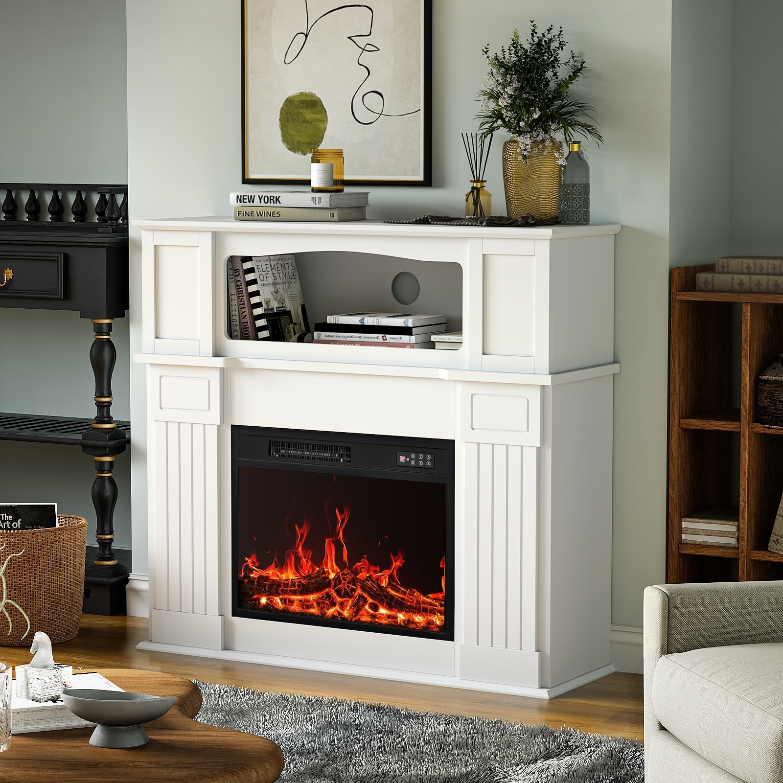 BOSSIN 43" Electric Fireplace with Mantel, 23 inch Electric Fireplace Insert,Freestanding TV Stand with Fireplace Wooden Firebox