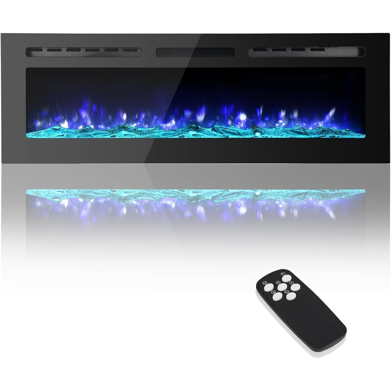 60" Electric Fireplace, Recessed and Wall Mounted Fire Place with Ultra-Thin Linear Fireplace Heater