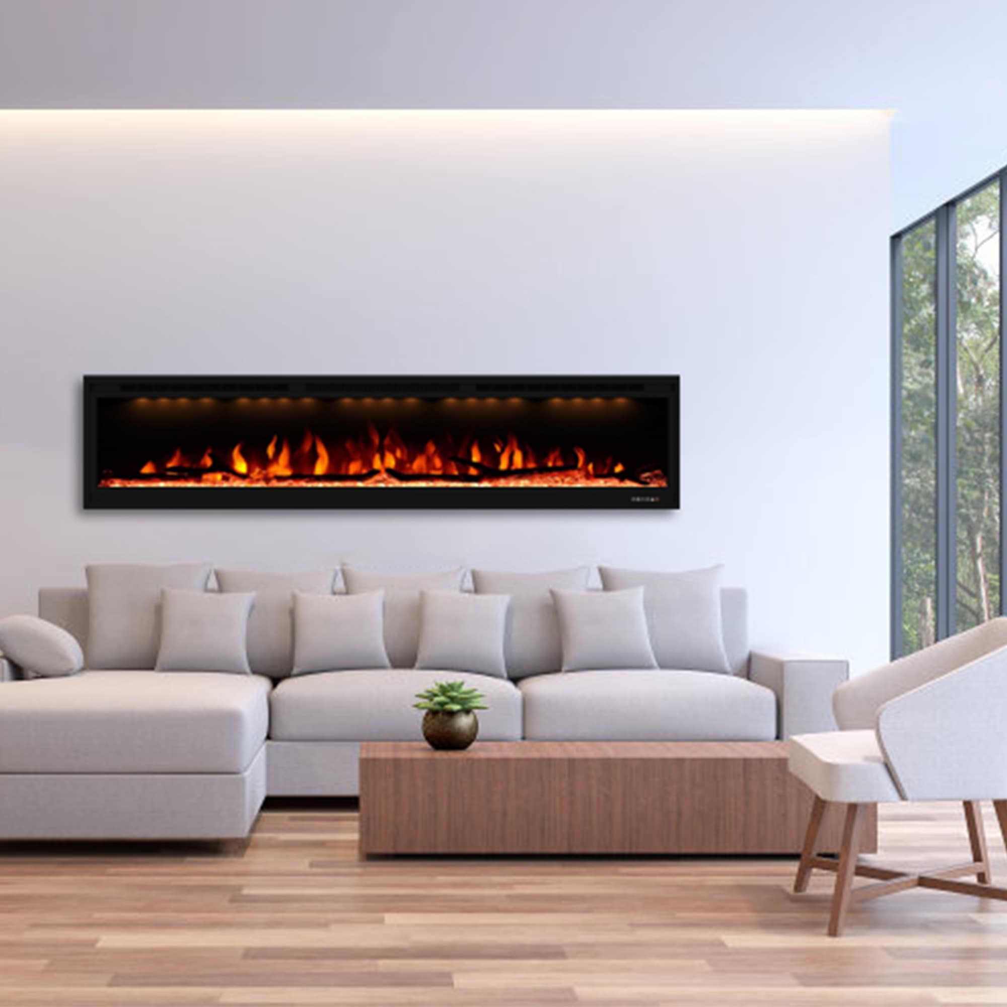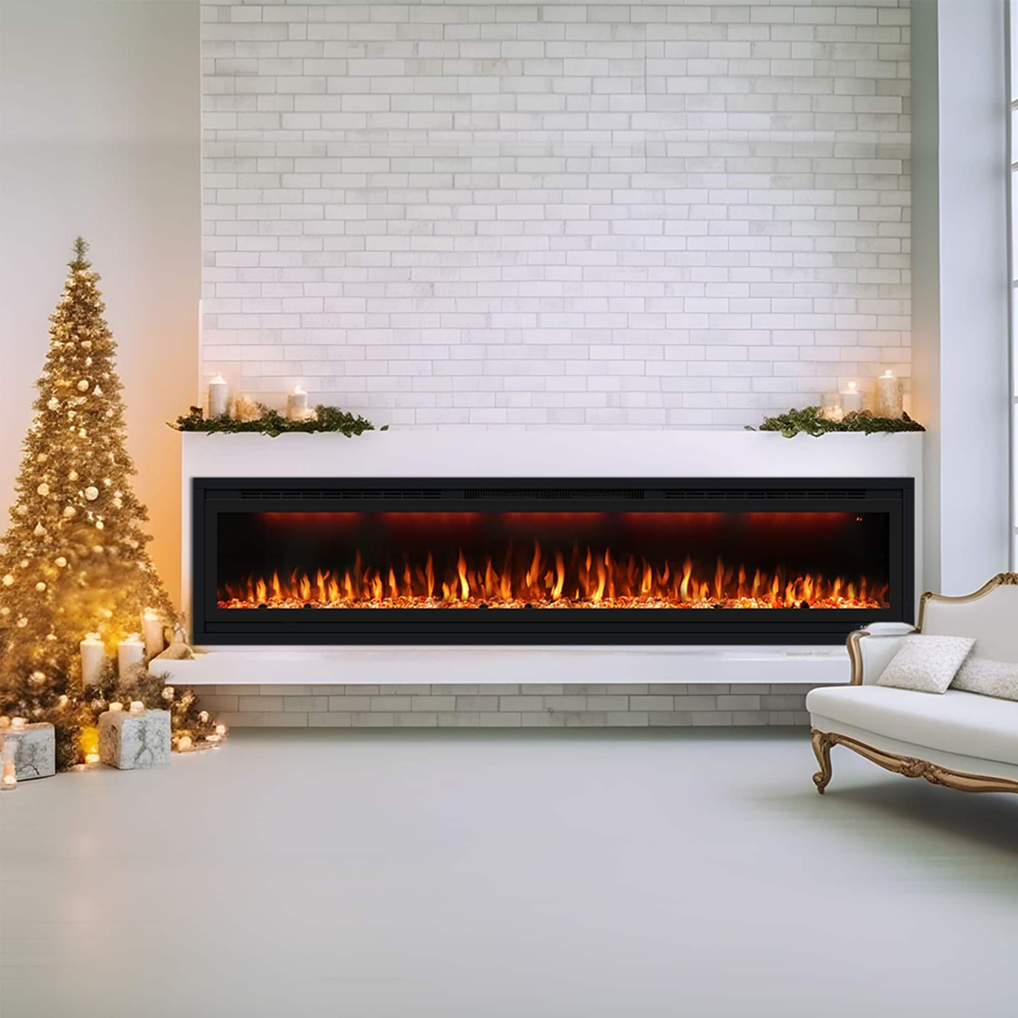 3D Flame Effect Electric Fireplace, Smart WiFi Alexa Voice Control, Recessed and Wall-Mounted