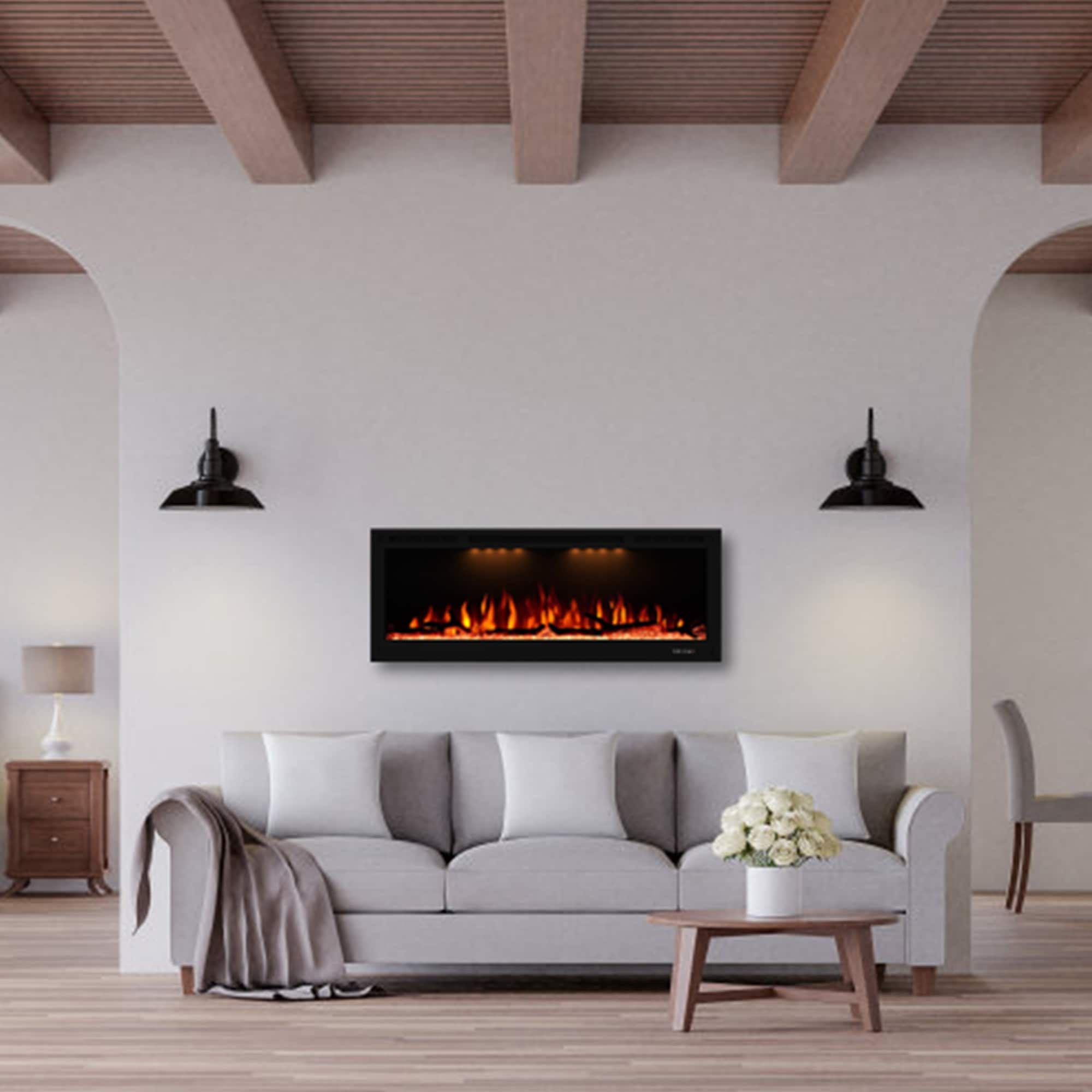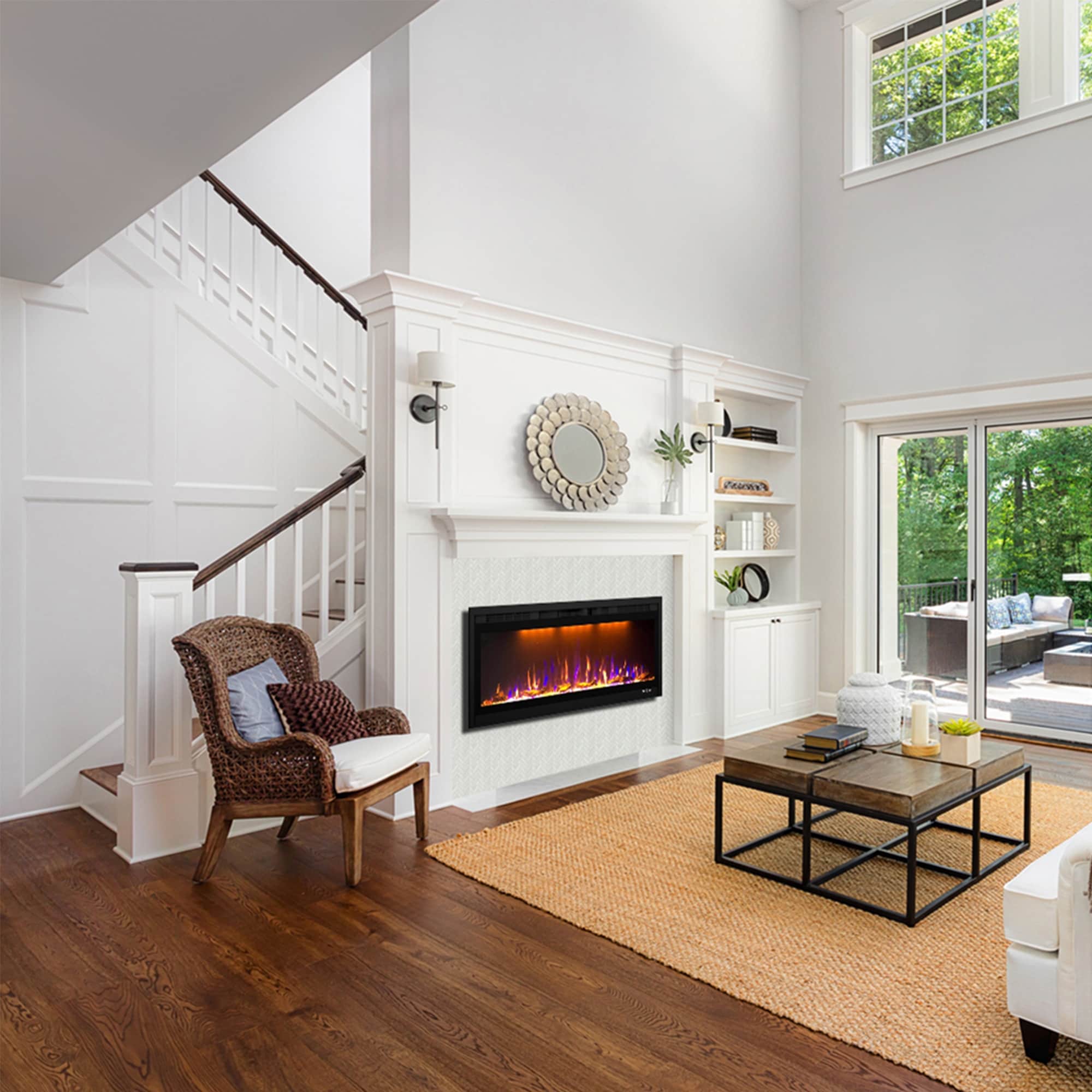 50" Recessed Wall Mounted Linear Electric Fireplace with Remote and Timer, 13 Adjustable Flame Color