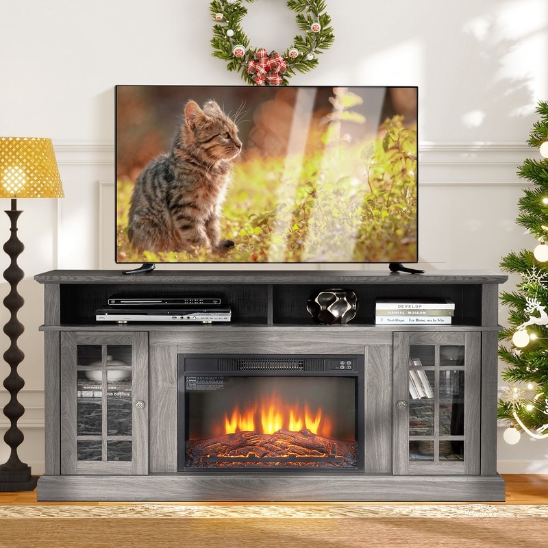 58.25 in. Freestanding Electric Fireplace TV Stand with 23 in. Electric Fireplace Insert, Espresso/Gray Wash/Dark Walnut