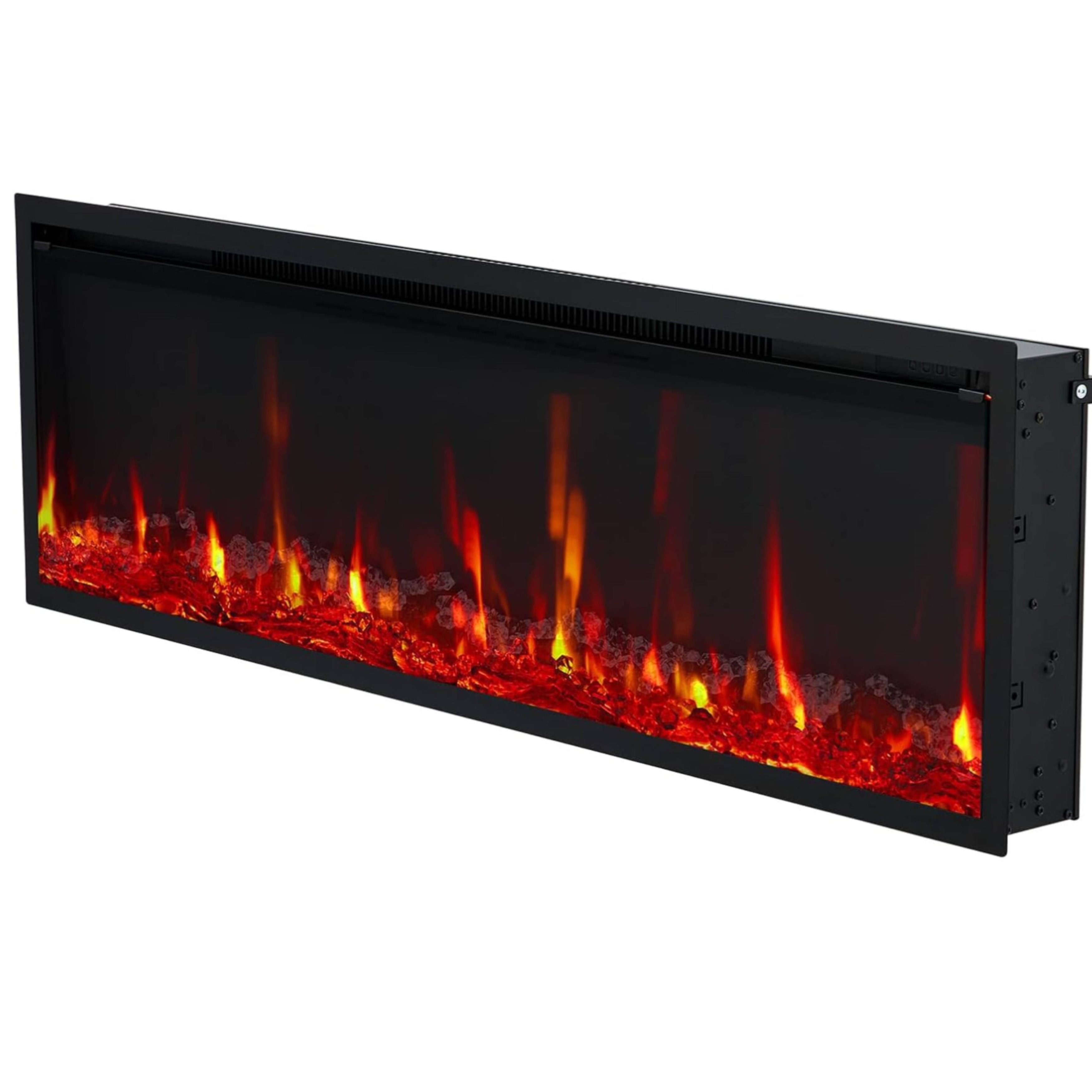 50" Electric Fireplace Heater Wall Mounted/ Recessed with Remote Control, 750W/1500W with Timer