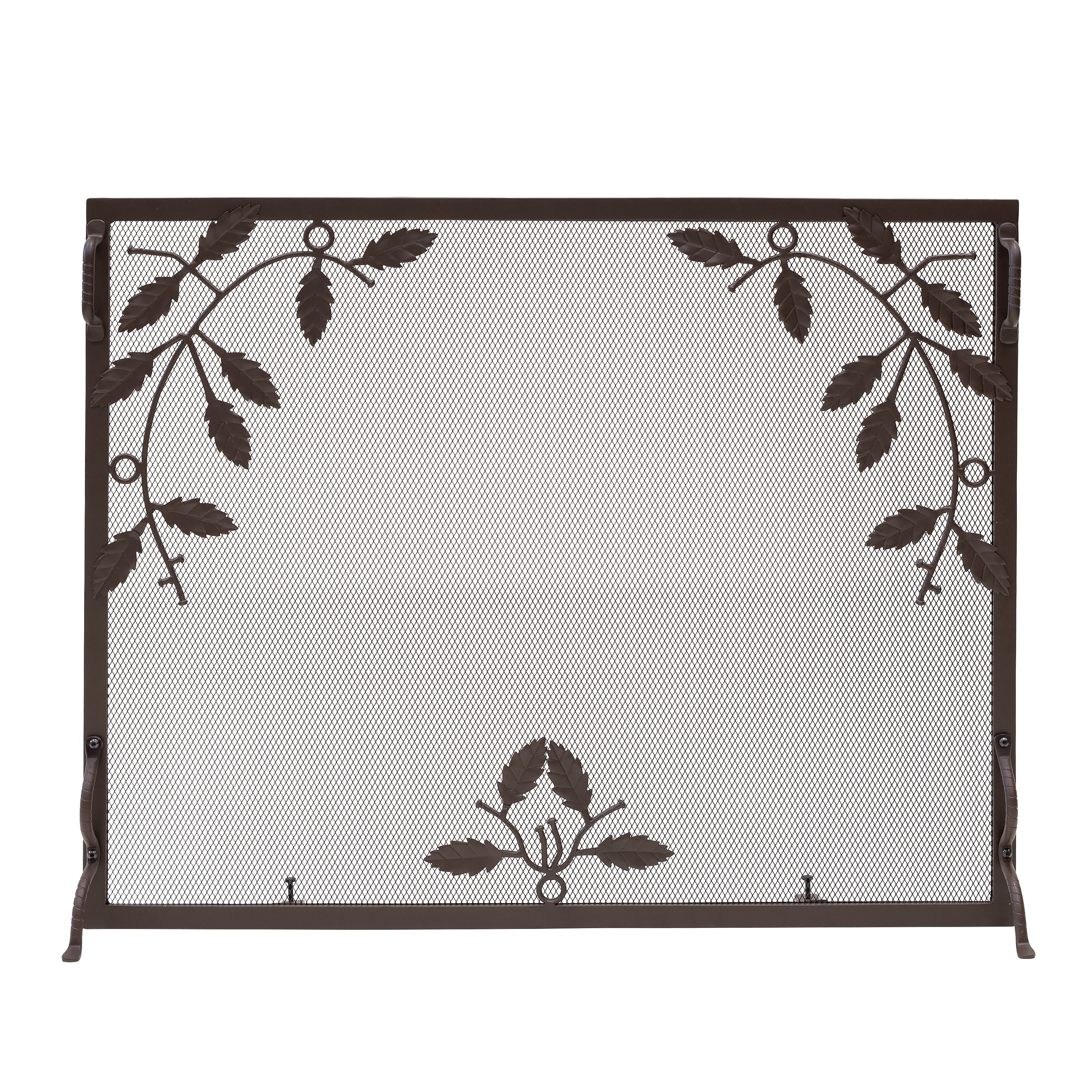 Achla Designs Weston Flat Fireplace Screen w/Leaves Design, 38 Inch Long, Roman Bronze