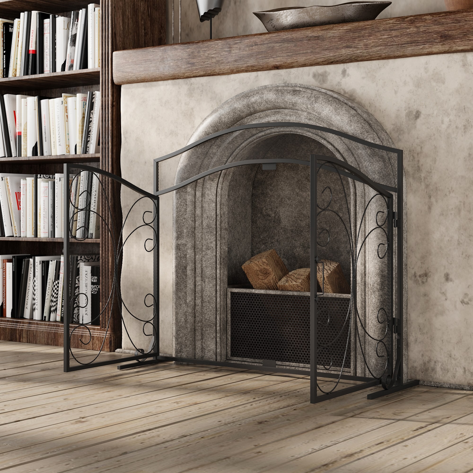 Roomfitters Arched Metal Fireplace Screen with Double Doors, Ornate Scrollwork Design, Sturdy Mesh for Enhanced Spark Protection