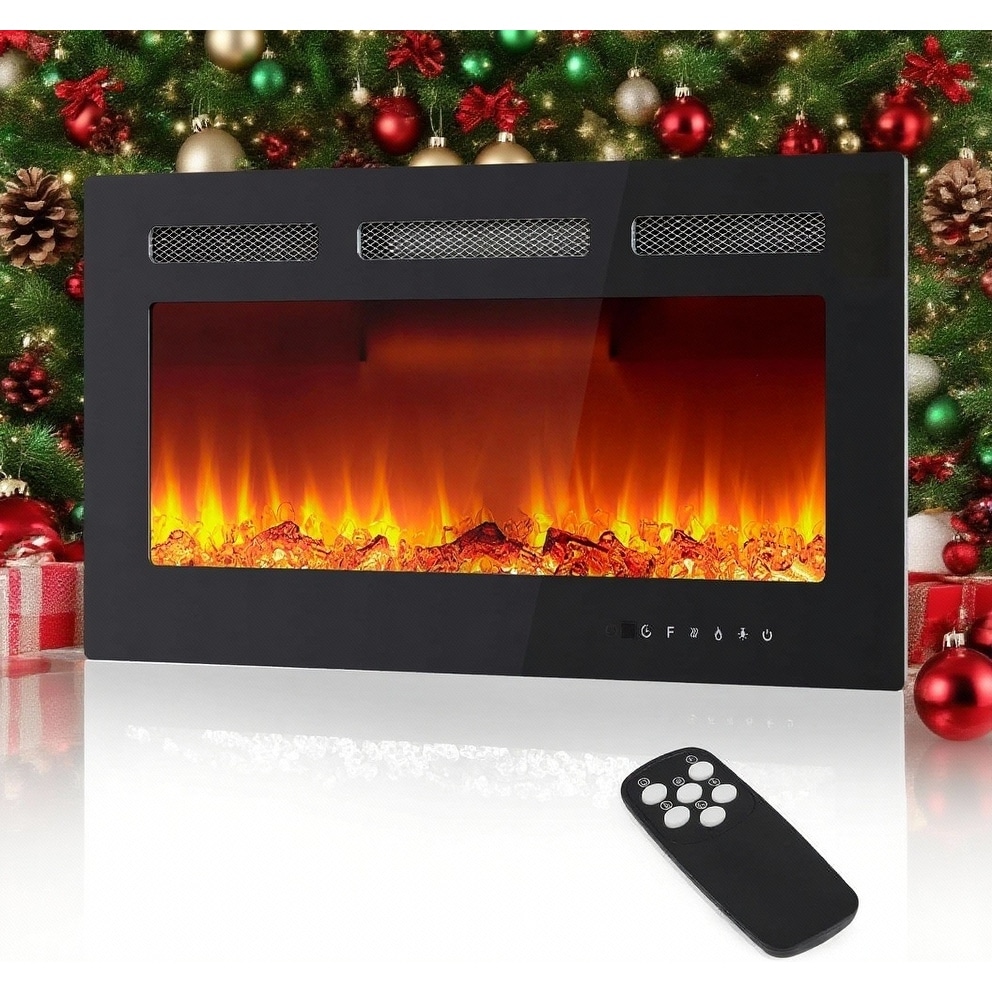 120V 1500W Wall Mounted Electric Fireplace, Remote & Touch Control