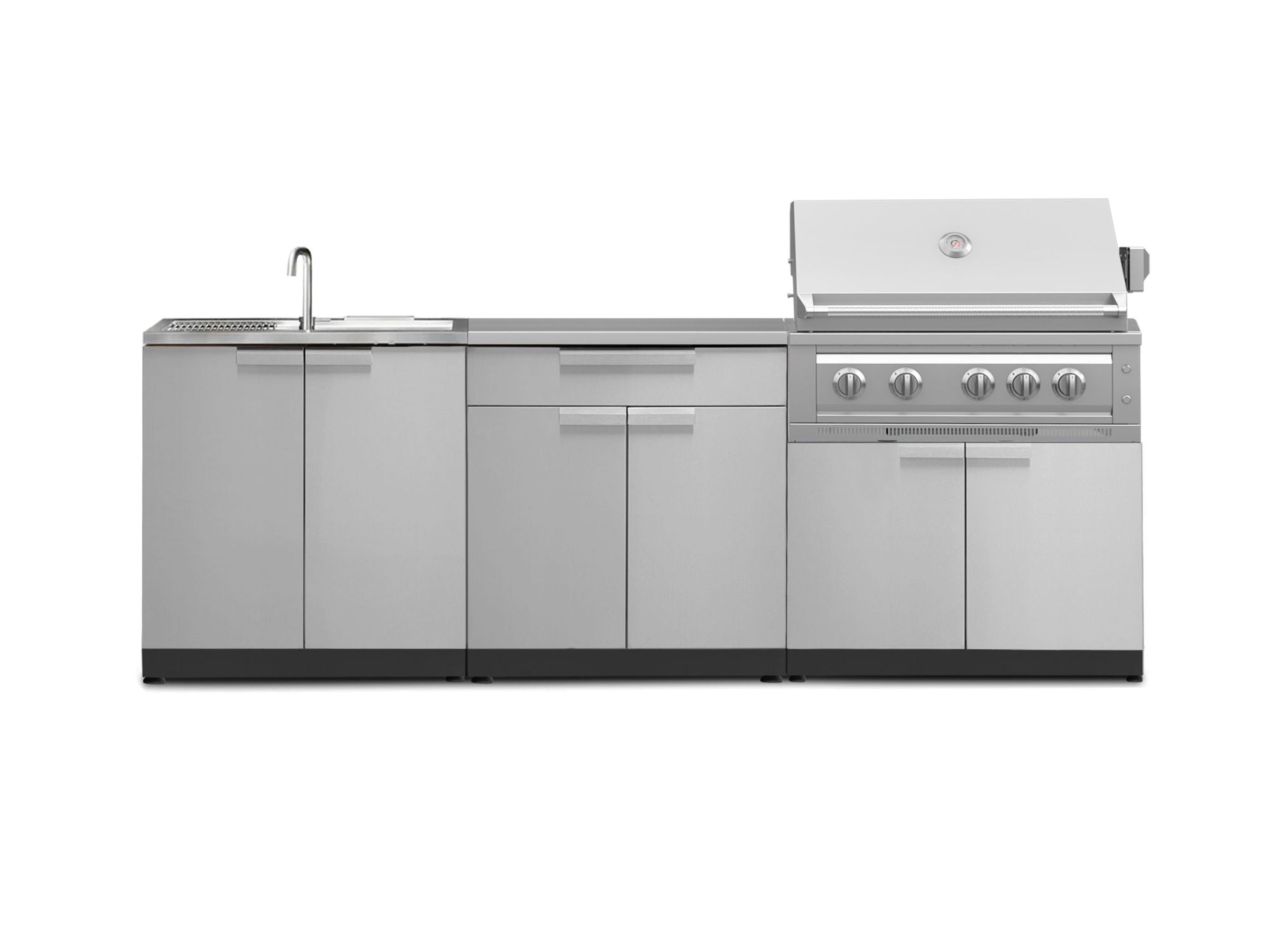 NewAge Outdoor Kitchens Stainless-Steel 5-Piece Cabinet Set with Bar, Sink, Grill Cabinet, Platinum Grill, and Countertop