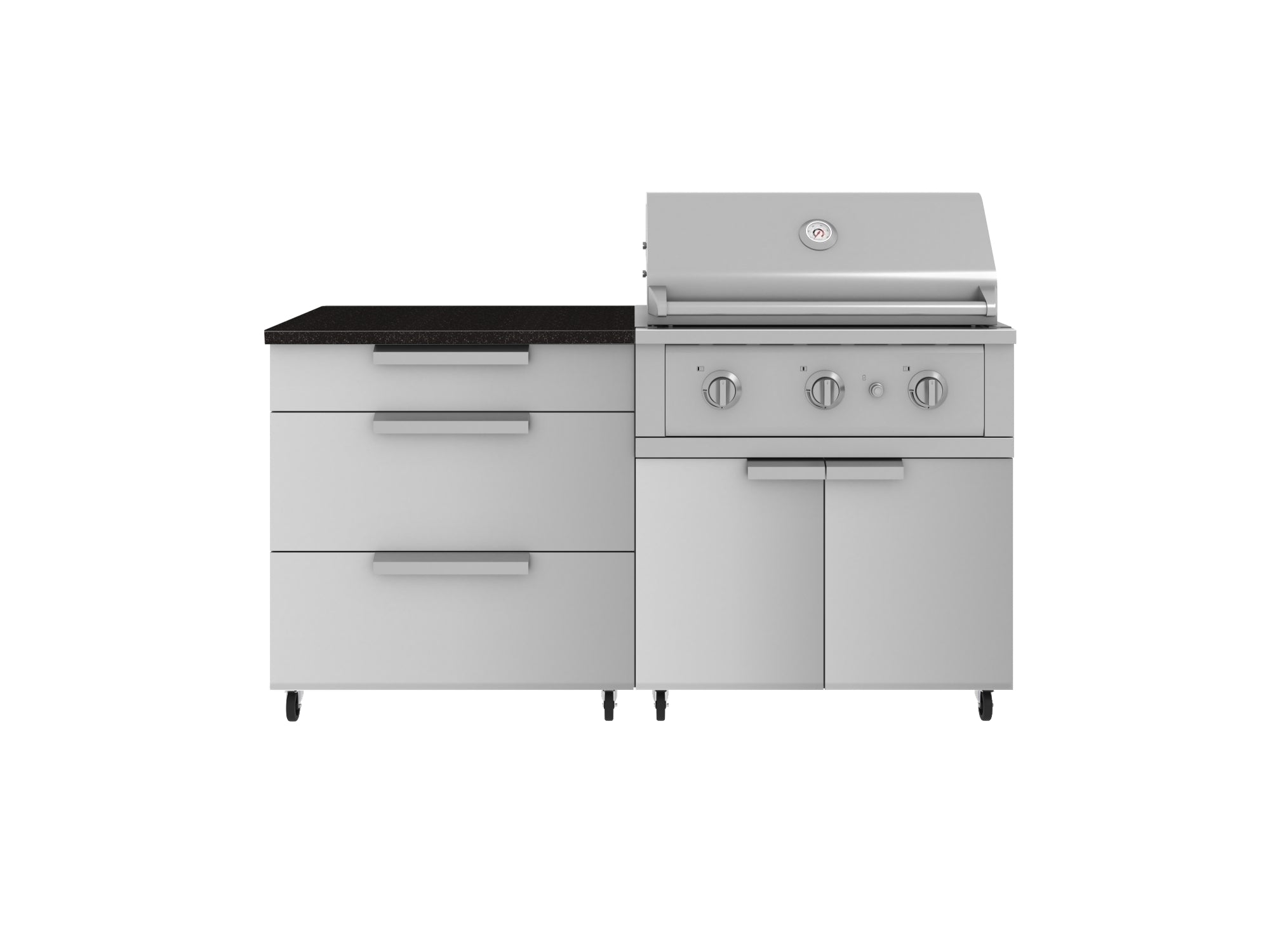 NewAge Outdoor Kitchens Stainless Steel 4-Piece Cabinet Set with Casters and 3 Drawer, Grill Cabinet, Performance Grill, Countertop