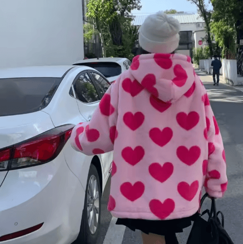 Harajuku Heart Plush Hooded Jacket Cozy Plush Winter Jacket Women pink m(us 6)