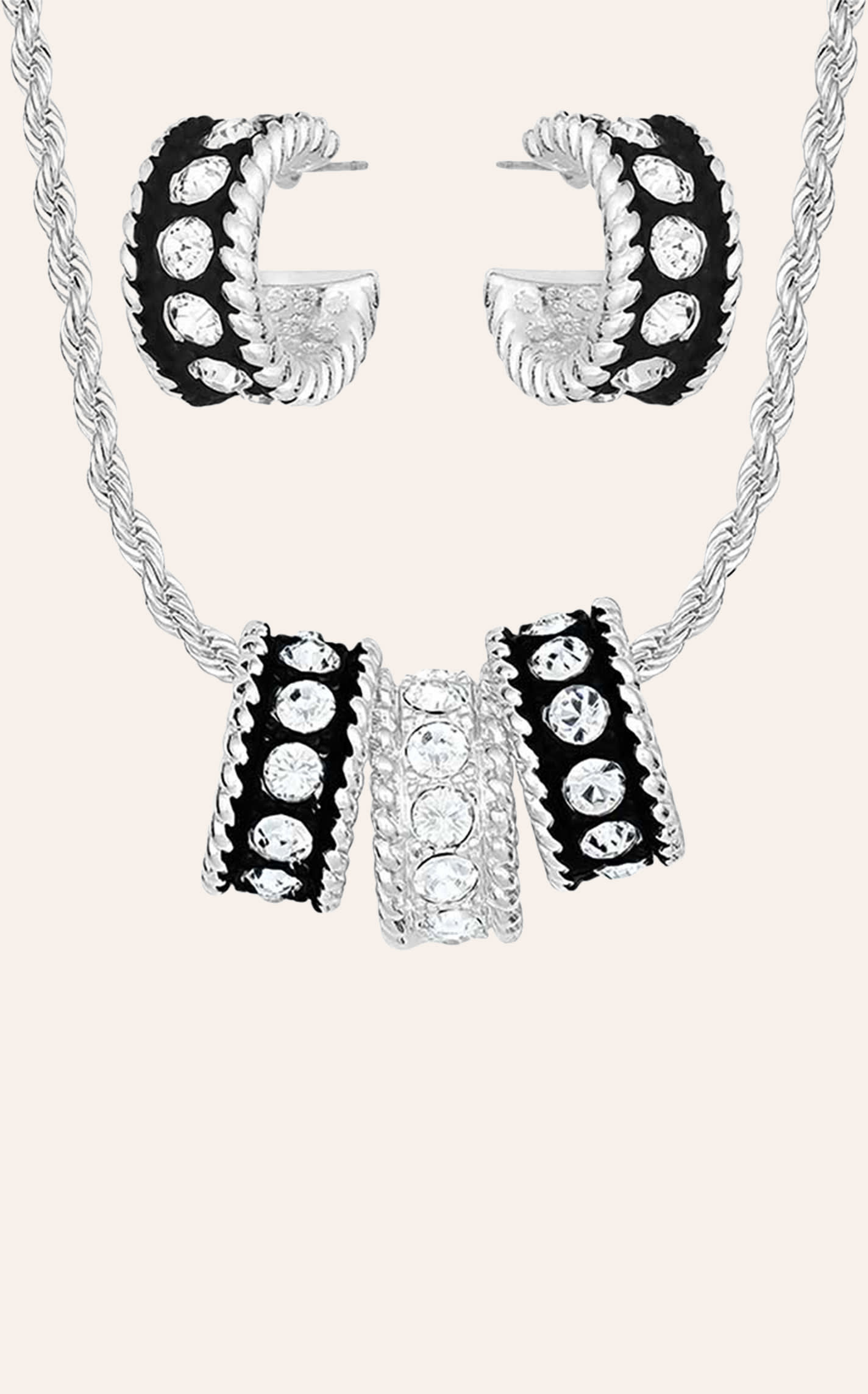 Montana Silversmiths Silver with Black Crystal Shine Necklace & Earrings Jewelry Set - NOSZ - From Cavender's