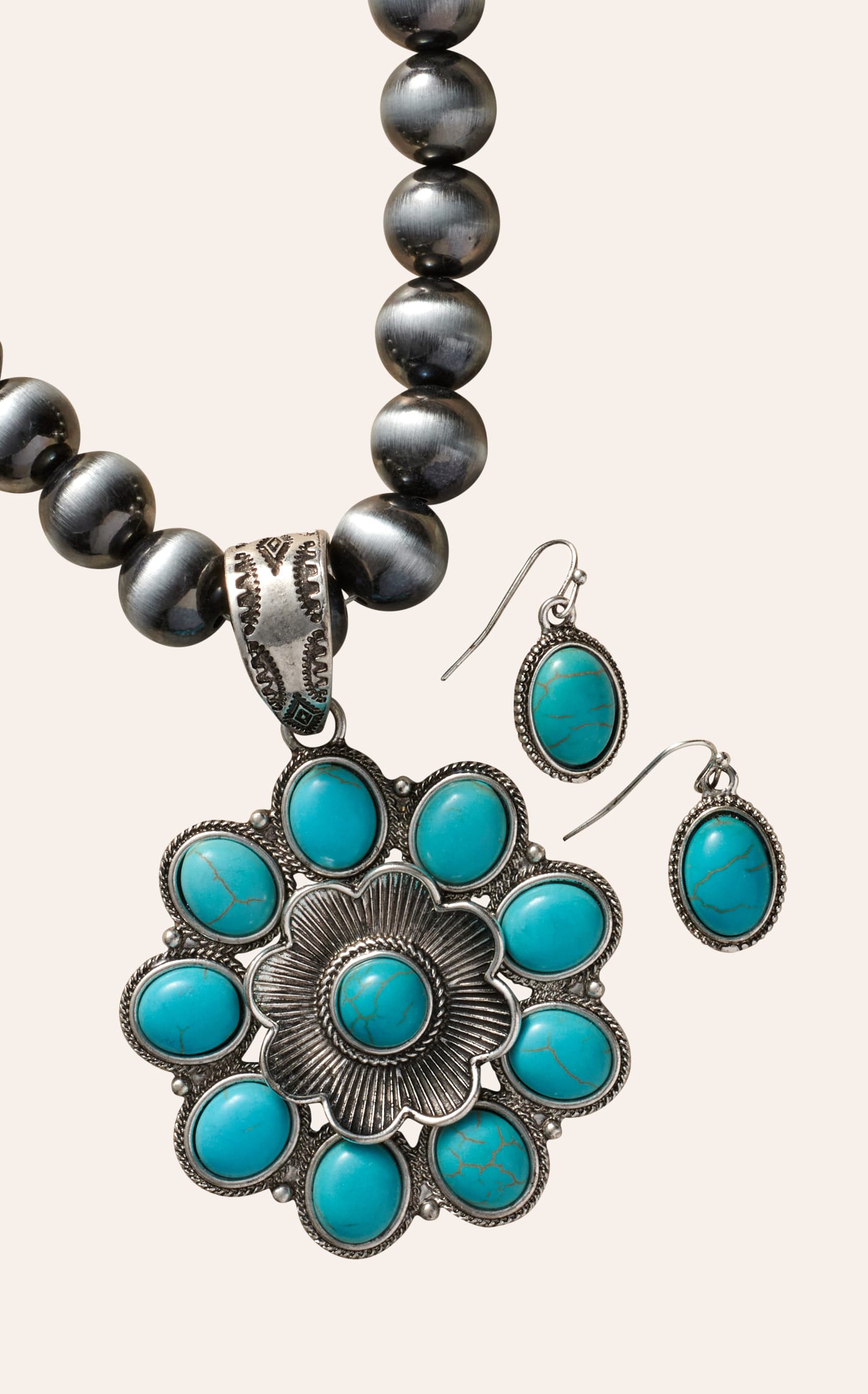 806 by Pink Panache Large Silver Navajo Pearls & Turquoise Stone Jewelry Set - NOSZ - From Cavender's