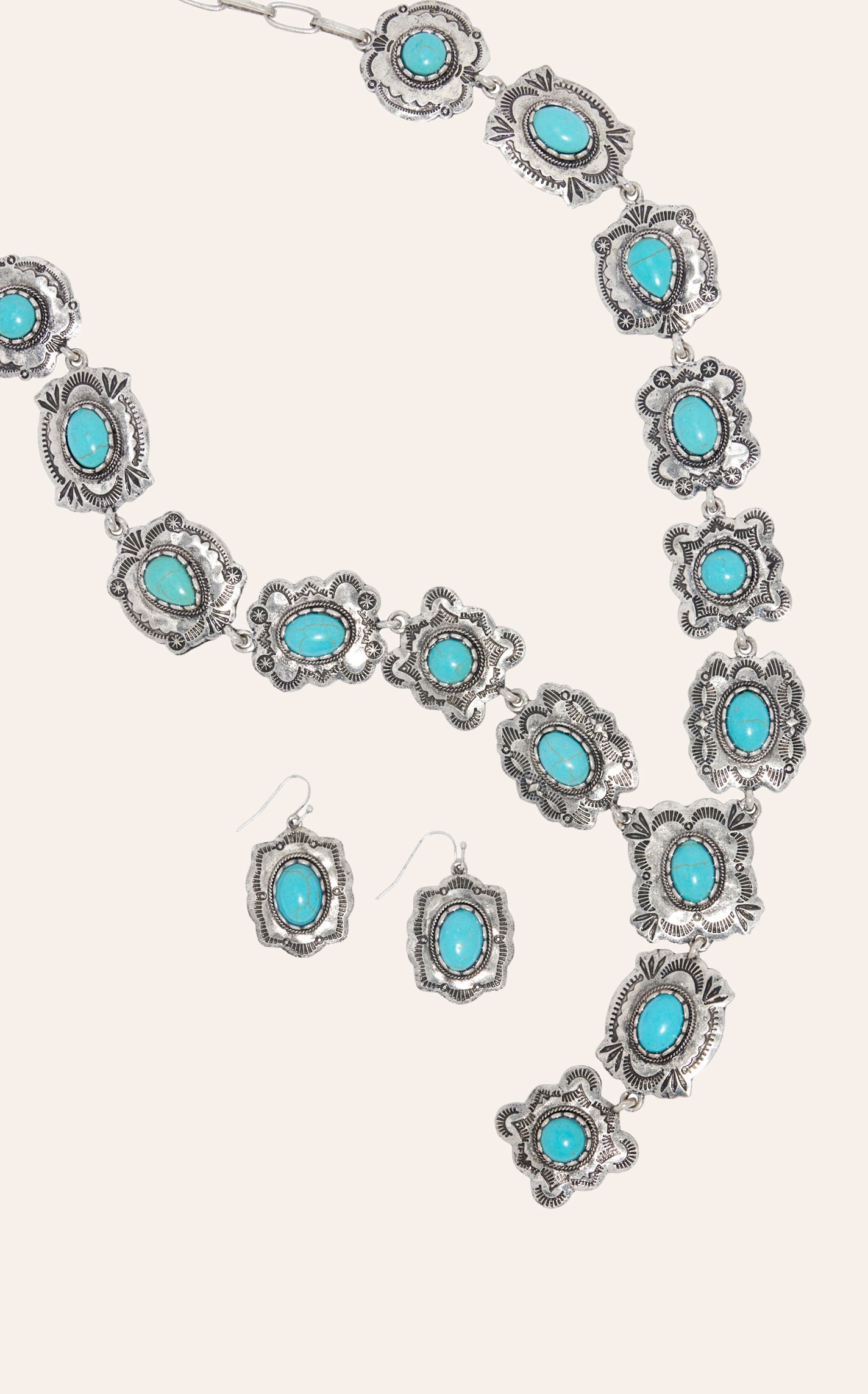 806 by Pink Panache Silver & Turquoise Etched Conchos Jewelry Set - NOSZ - From Cavender's