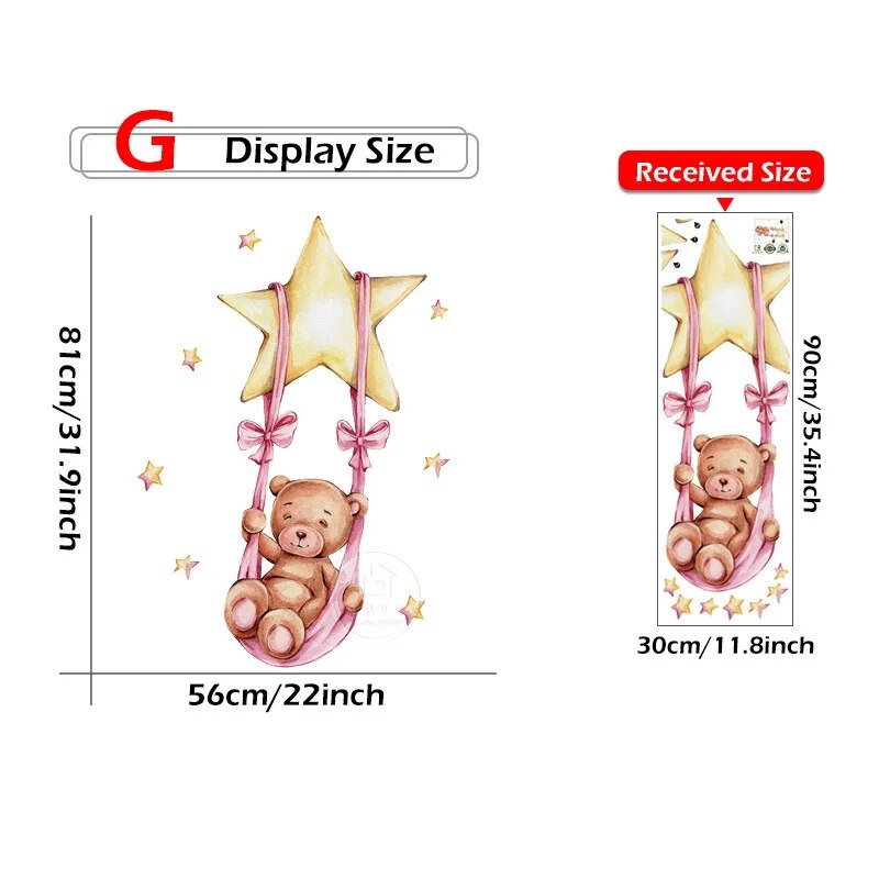 Cartoon Teddy Bear Moon Wall Stickers: Kids Room Nursery Decor 5
