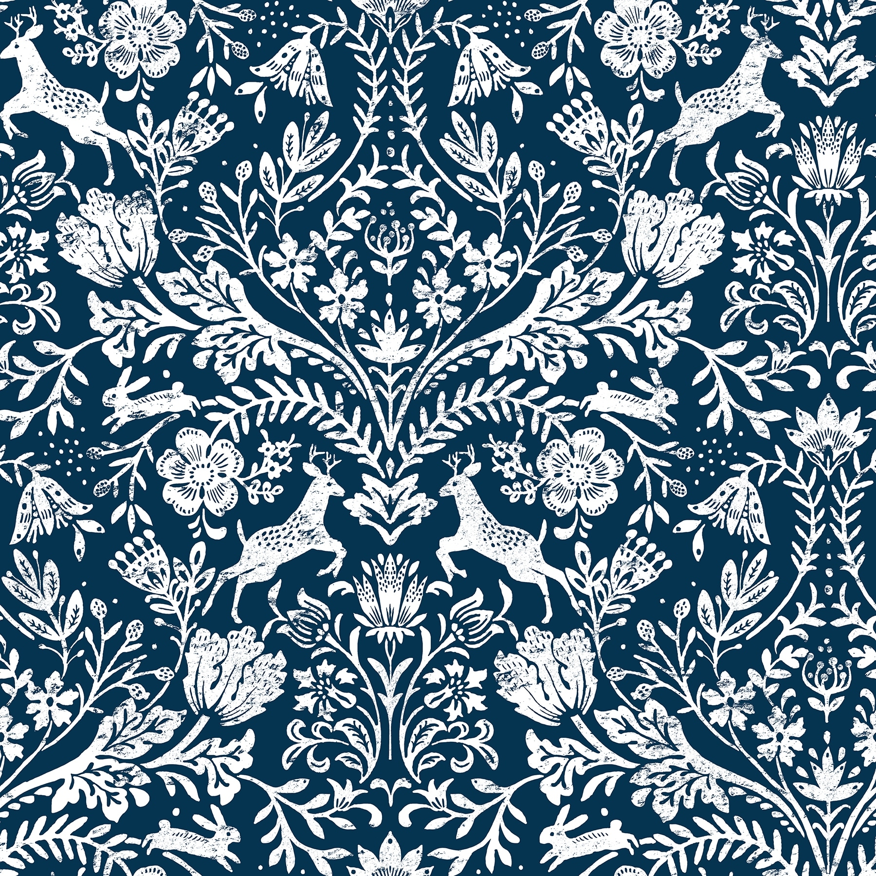 Chesapeake Forest Dance Navy Damask Wallpaper