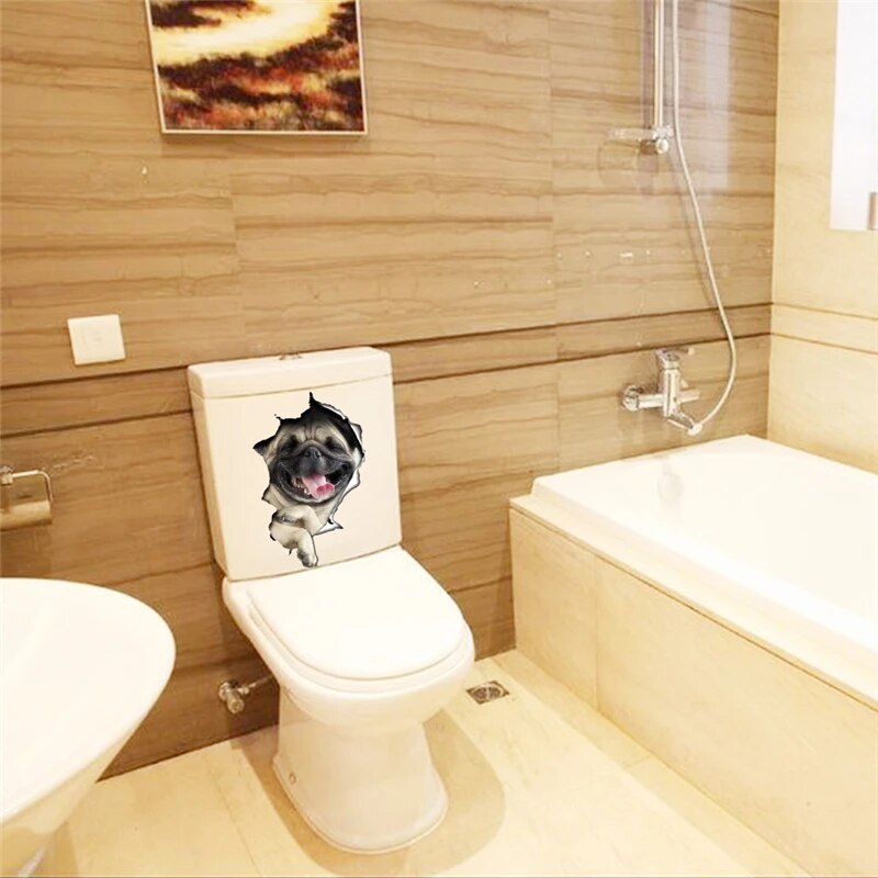 Vivid 3D Cat Dog Toilet Stickers | DIY Funny Cartoon Animal WC Mural Art Lovely Home Decoration With Kitten, Puppy Saf 4 14110