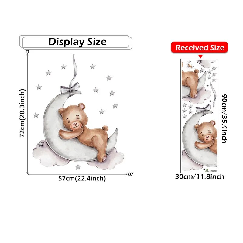 Cartoon Teddy Bear Moon Wall Stickers: Kids Room Nursery Decor 7