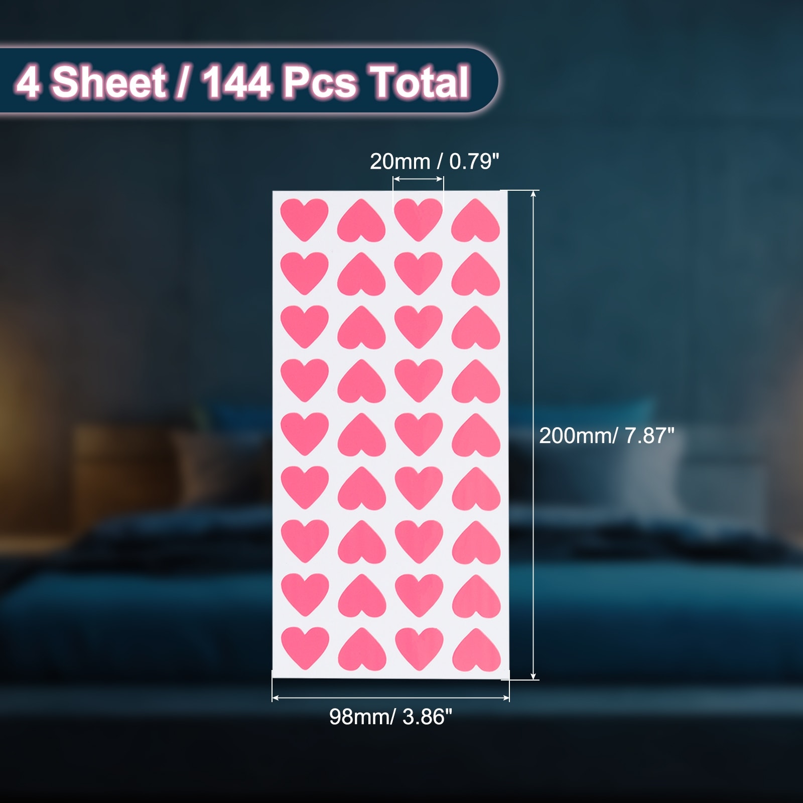 Glow in the Dark Heart Stickers, Heart Luminous Decor - 144Pcs