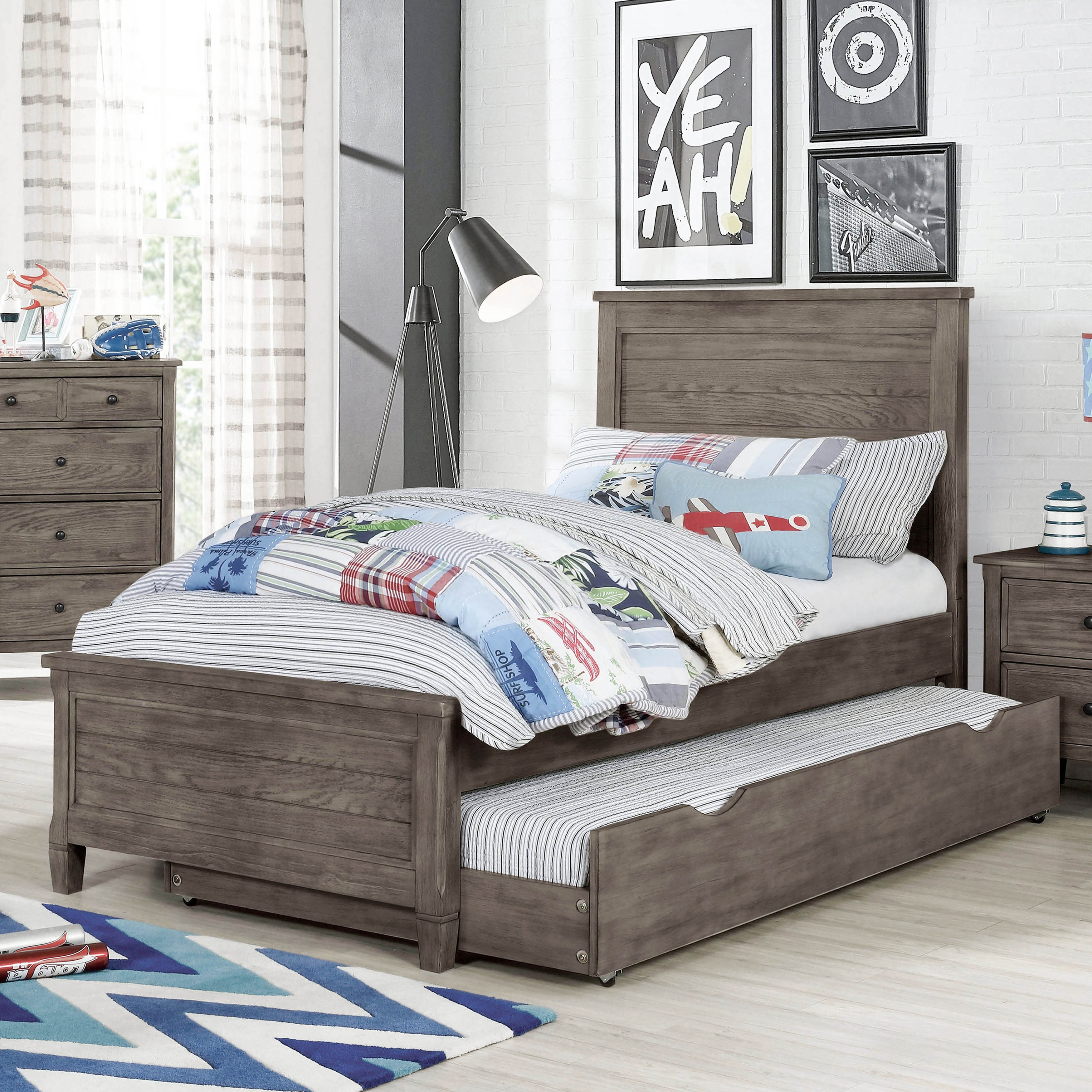 Furniture of America Lanister Wood Wire-Brushed Warm Grey Kids Panel Bed with Trundle