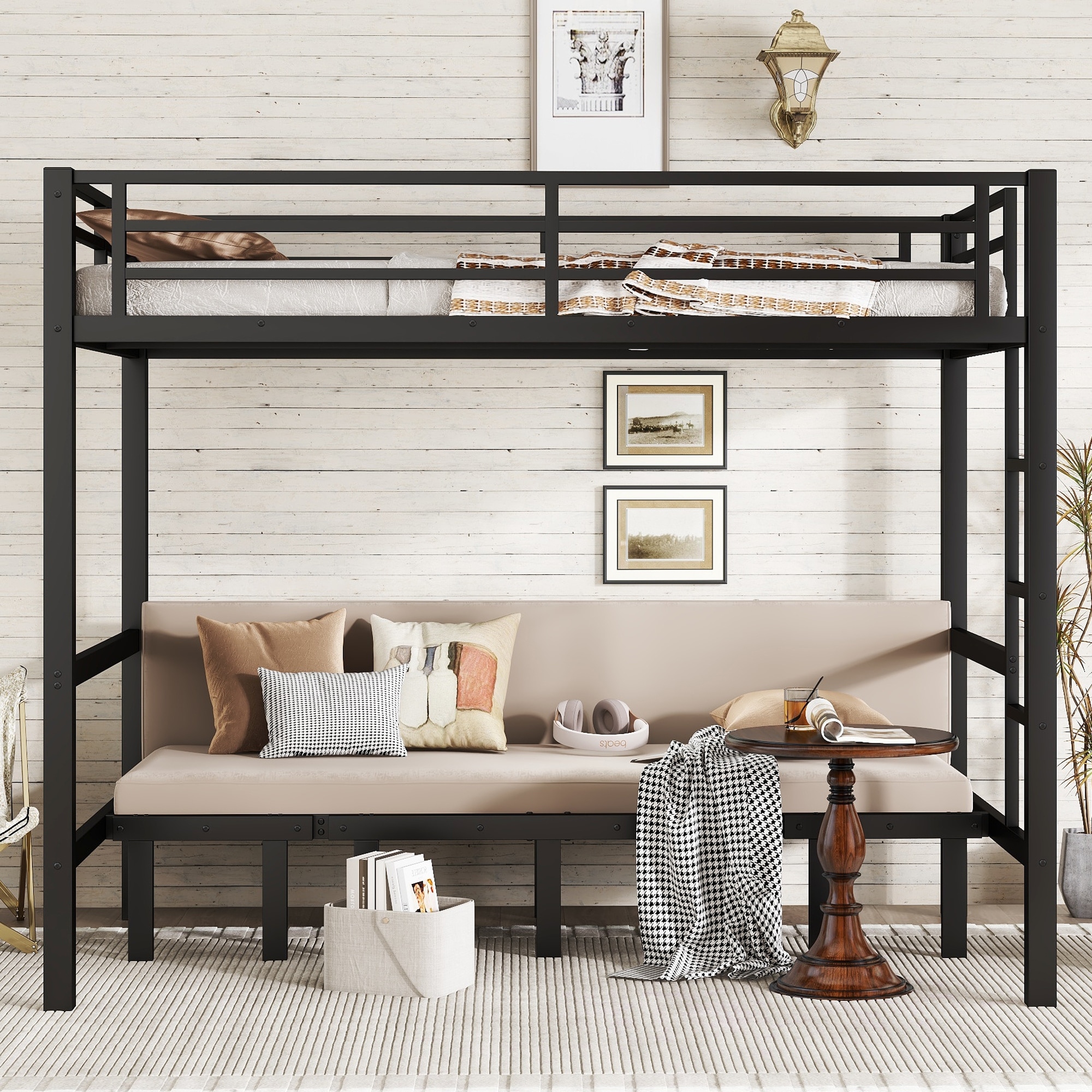 Pull-out Metal Bunk Bed – Lower Bunk Pulls Out In Three Sections; Top Bunk Features Safety Rails; Sleek Black Finish.