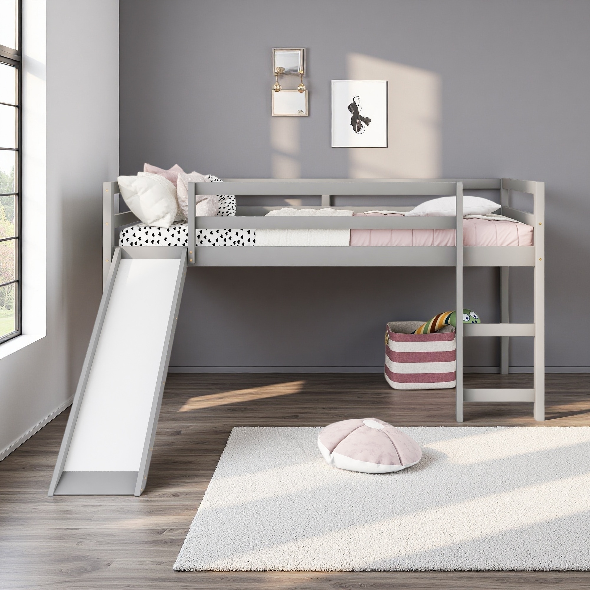 JACKPOT Contemporary Low Loft Twin Bed with End Ladder and Tent