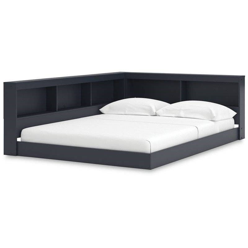 Corner Bookcase Platform Floor Bed with USB Charging Ports Engineered Wood Storage Headboard