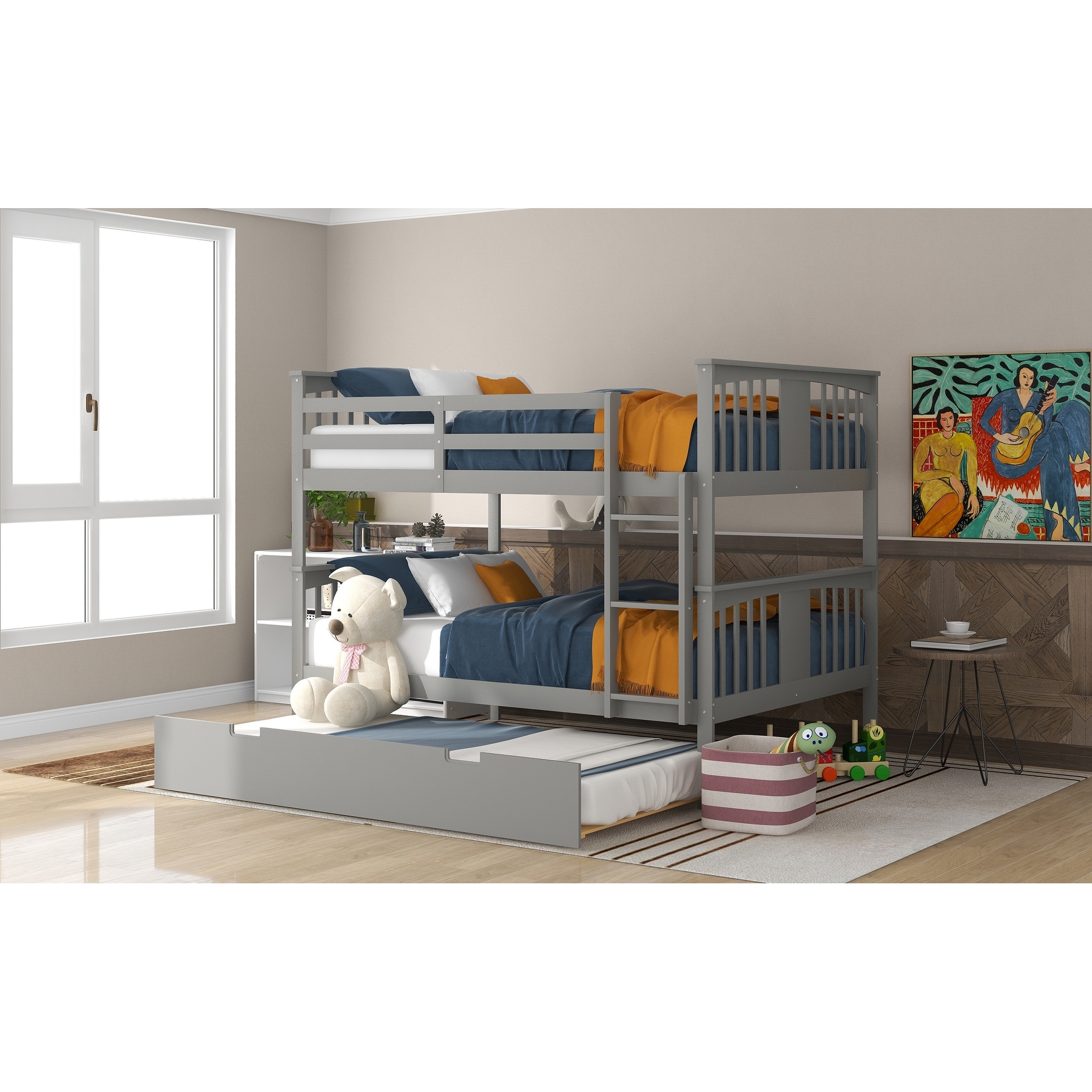 Full over Full Bunk Bed with Twin Size Trundle and Ladder