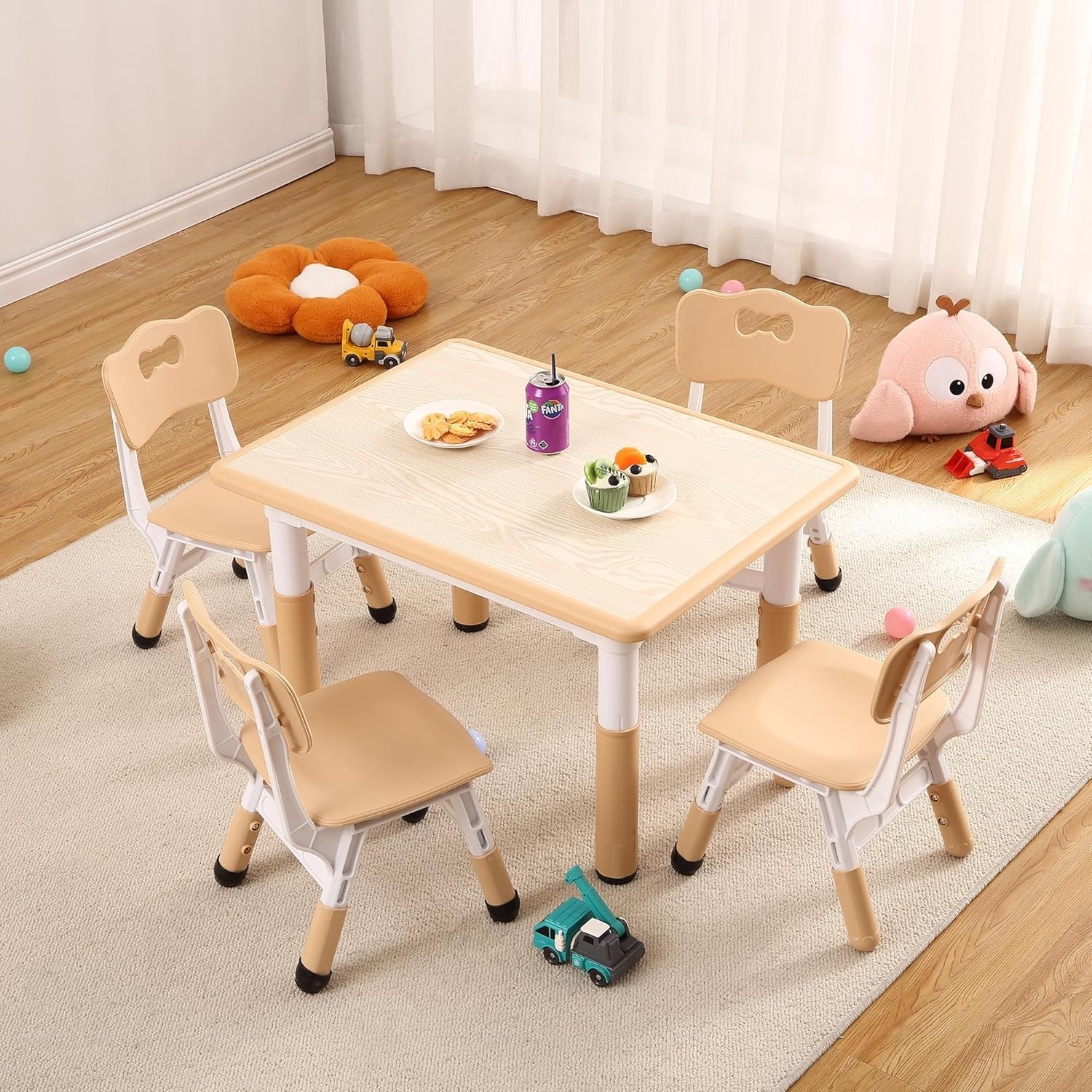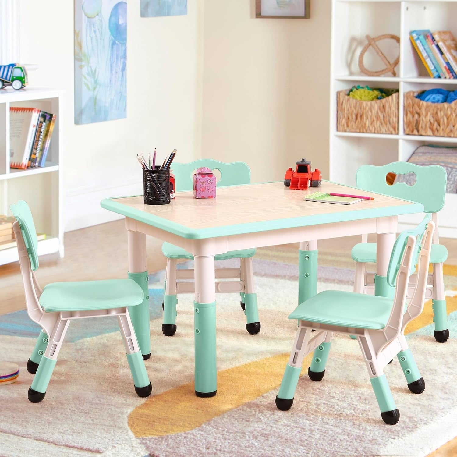 Kids Table & 4 Chairs Set, Adjustable Toddler Arts & Crafts Table for Ages 2–10, Activity Desk for Home & Classroom