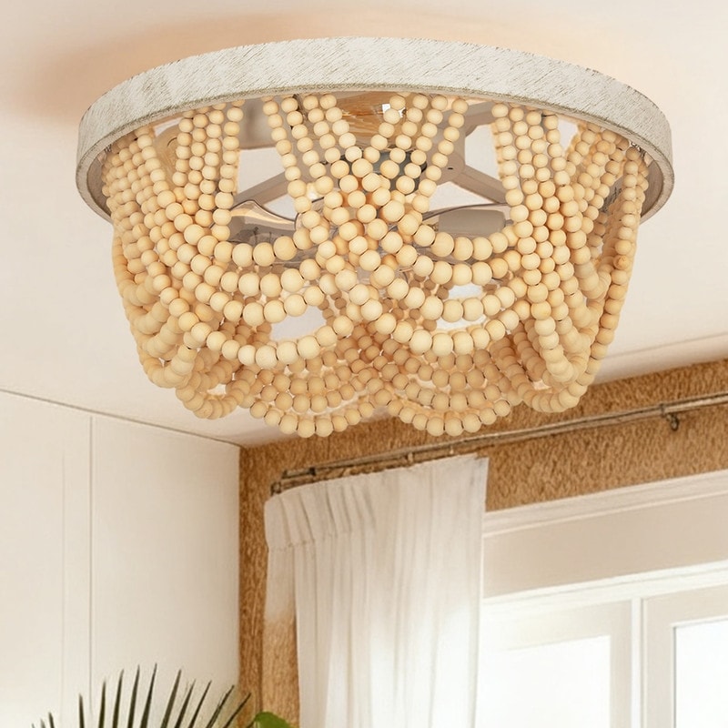 20 in. 4-Light Indoor Wood Boho Ceiling Fan with Light Kit and Remote Control Wood Beaded Flush Mount Ceiling Fan for Kids Room
