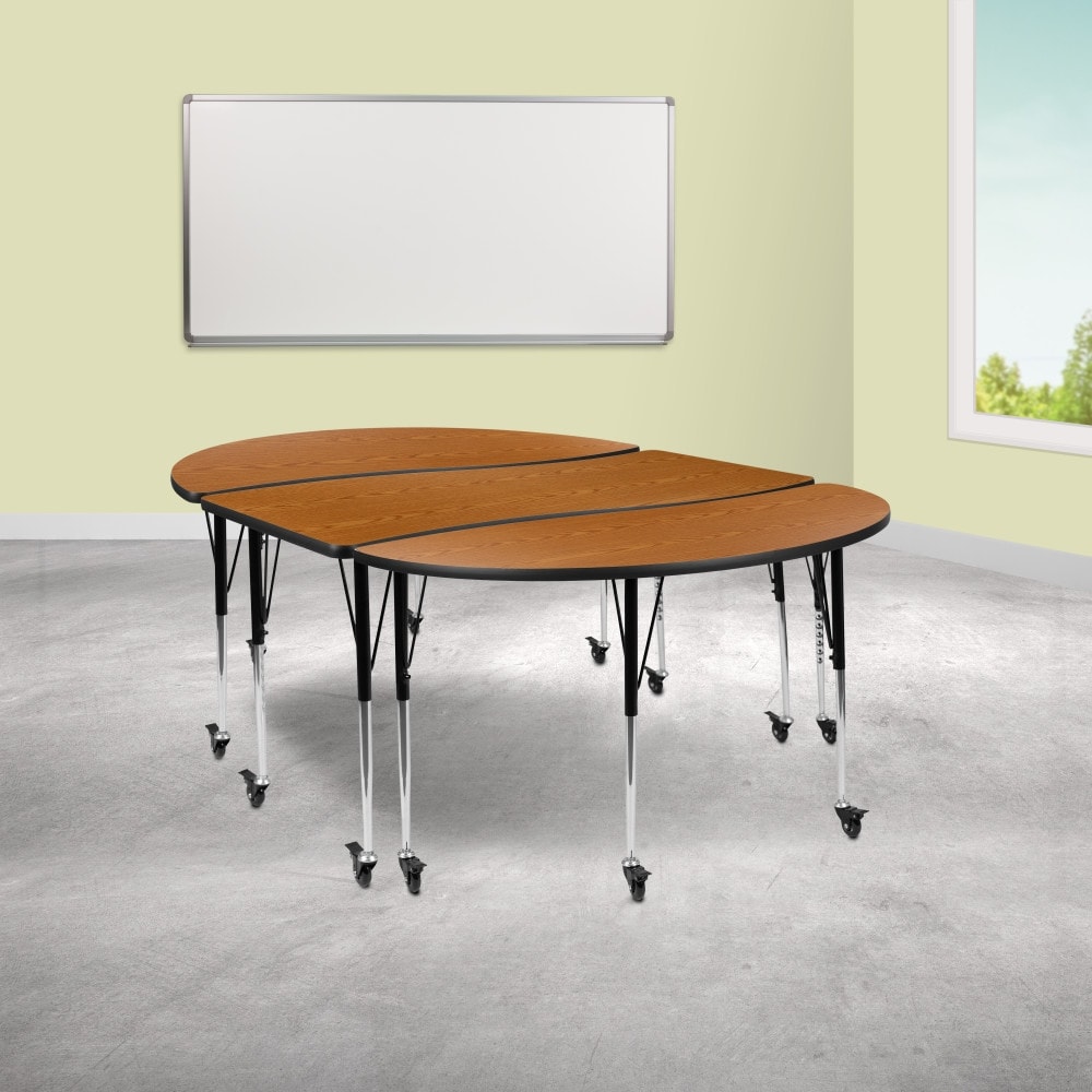 3 Mobile Piece 86" Oval Wave Flexible Adjustable Activity Table Set