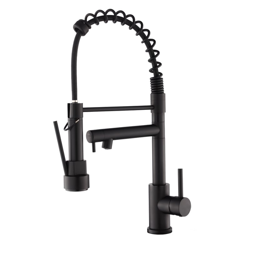 Matte Black Touch-On Kitchen Faucet, Pull Down 2-Function Spring Neck (1-Hole, Residential/Commercial/RV)