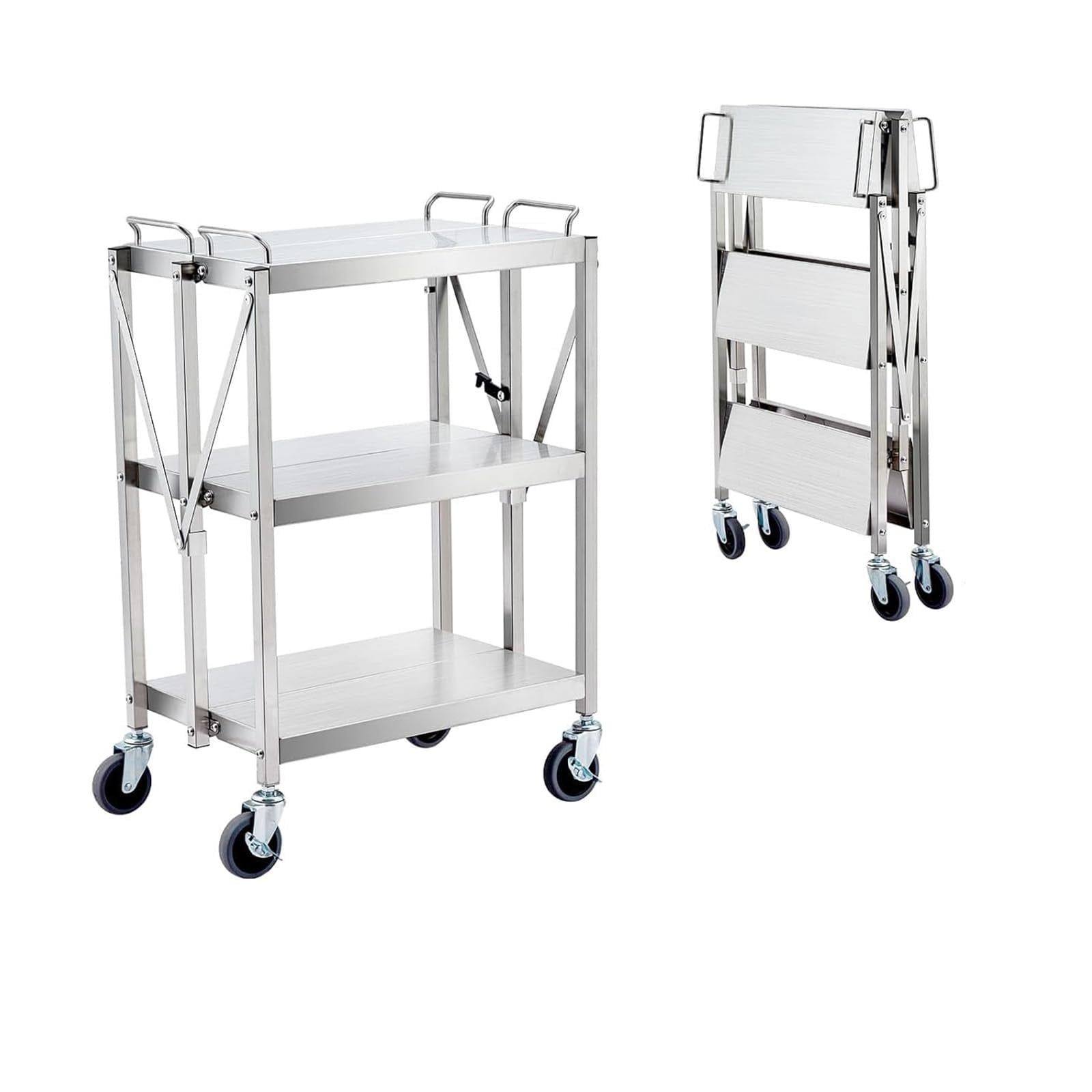 Foldable Utility Cart, 3-Tier Rolling Service Cart with Wheels