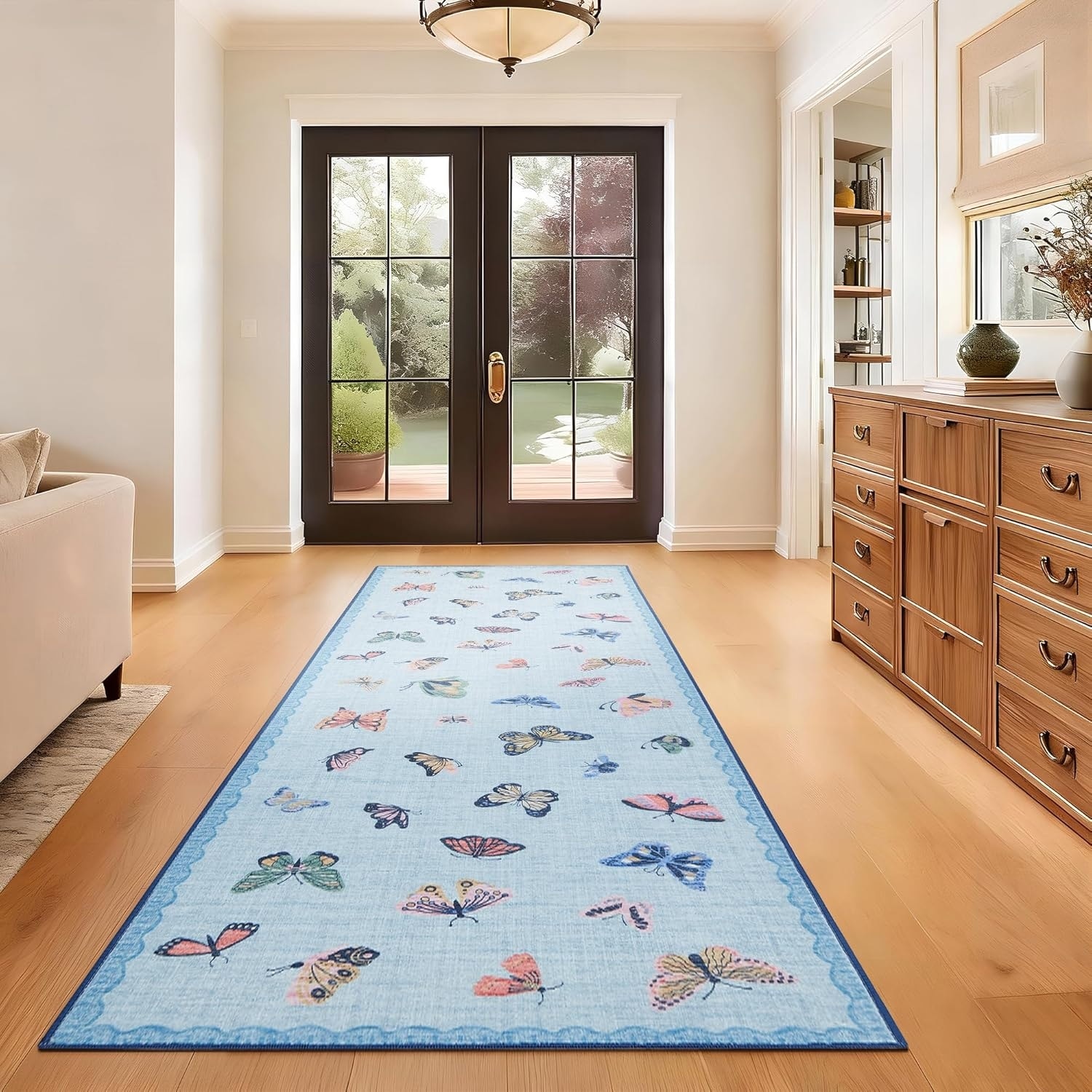 Butterfly Pattern Area Rug, Washable Non Slip Low Pile Rug for Bedroom Living Room
