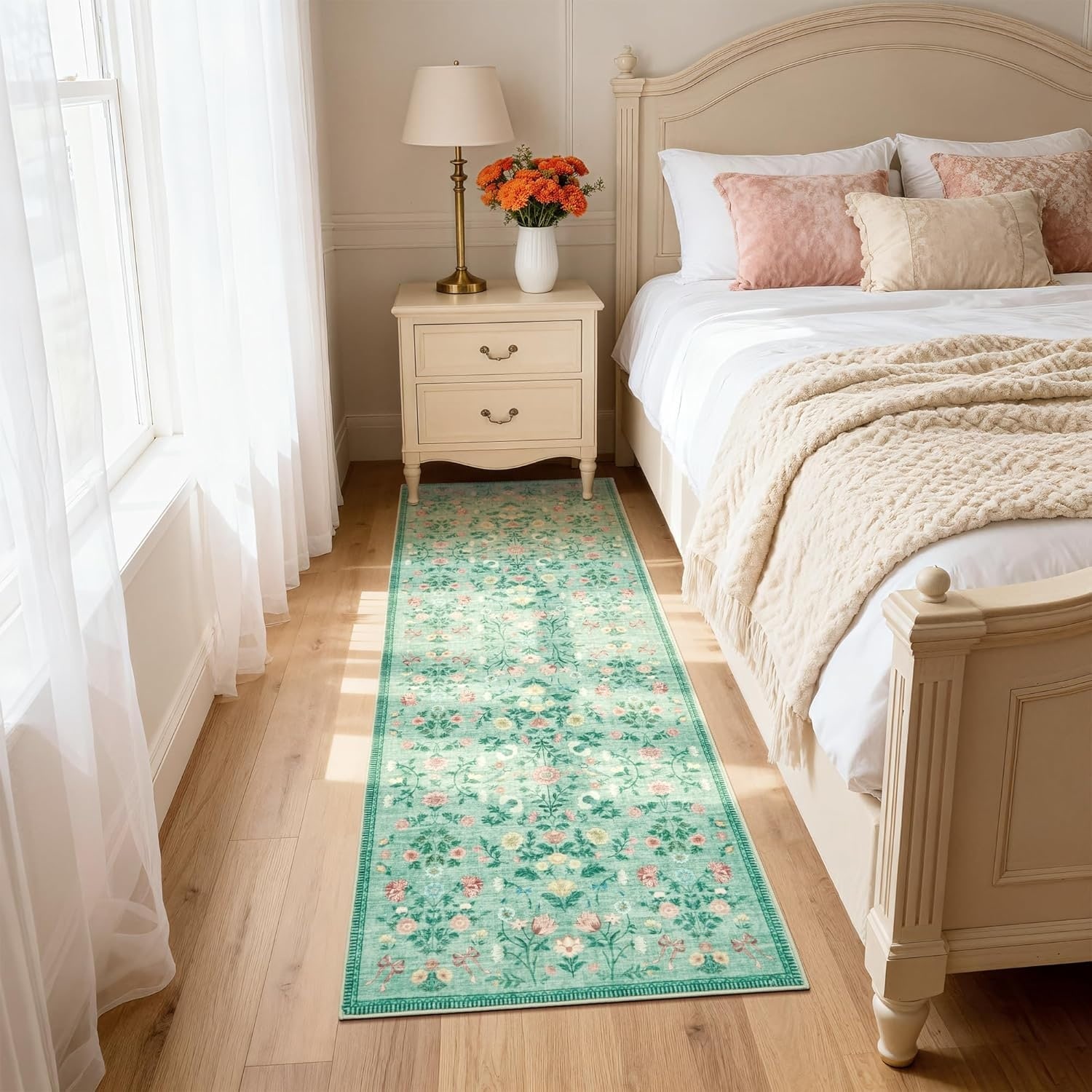 Floral Runner Rug, Washable Non Slip Foldable Rug for Hallway Kitchen