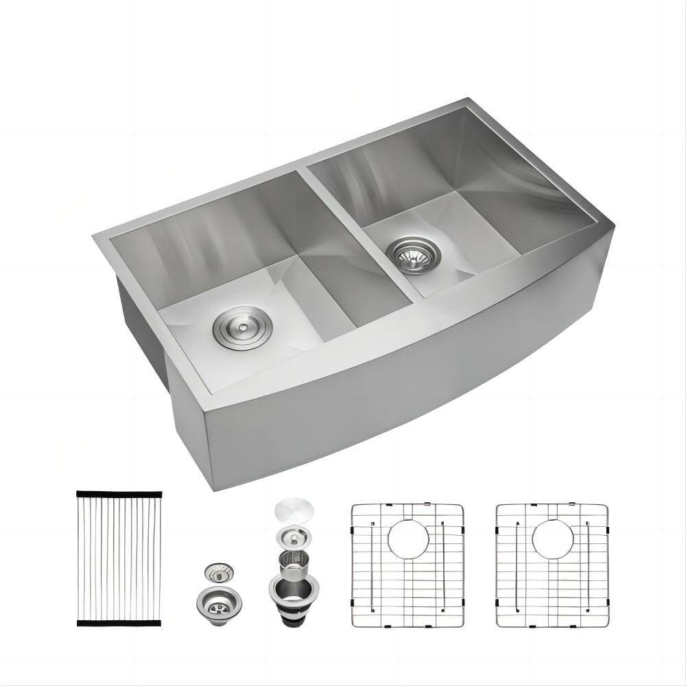 33 in 36 in Double Bowl (50/50) Farmhouse Sink Apron Front Kitchen Sink