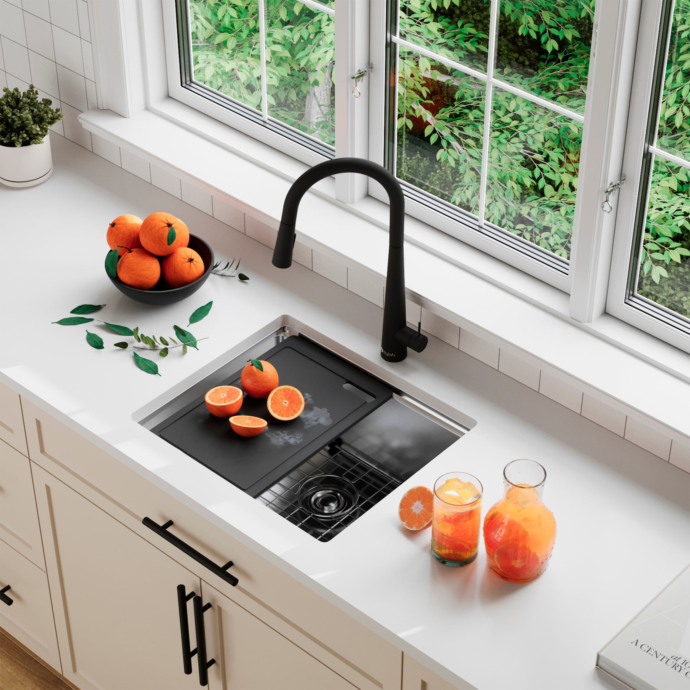 STYLISH 22 inches Workstation Single Bowl Undermount 16 Gauge Stainless Steel Kitchen Sink with Built in Accessories Handmade