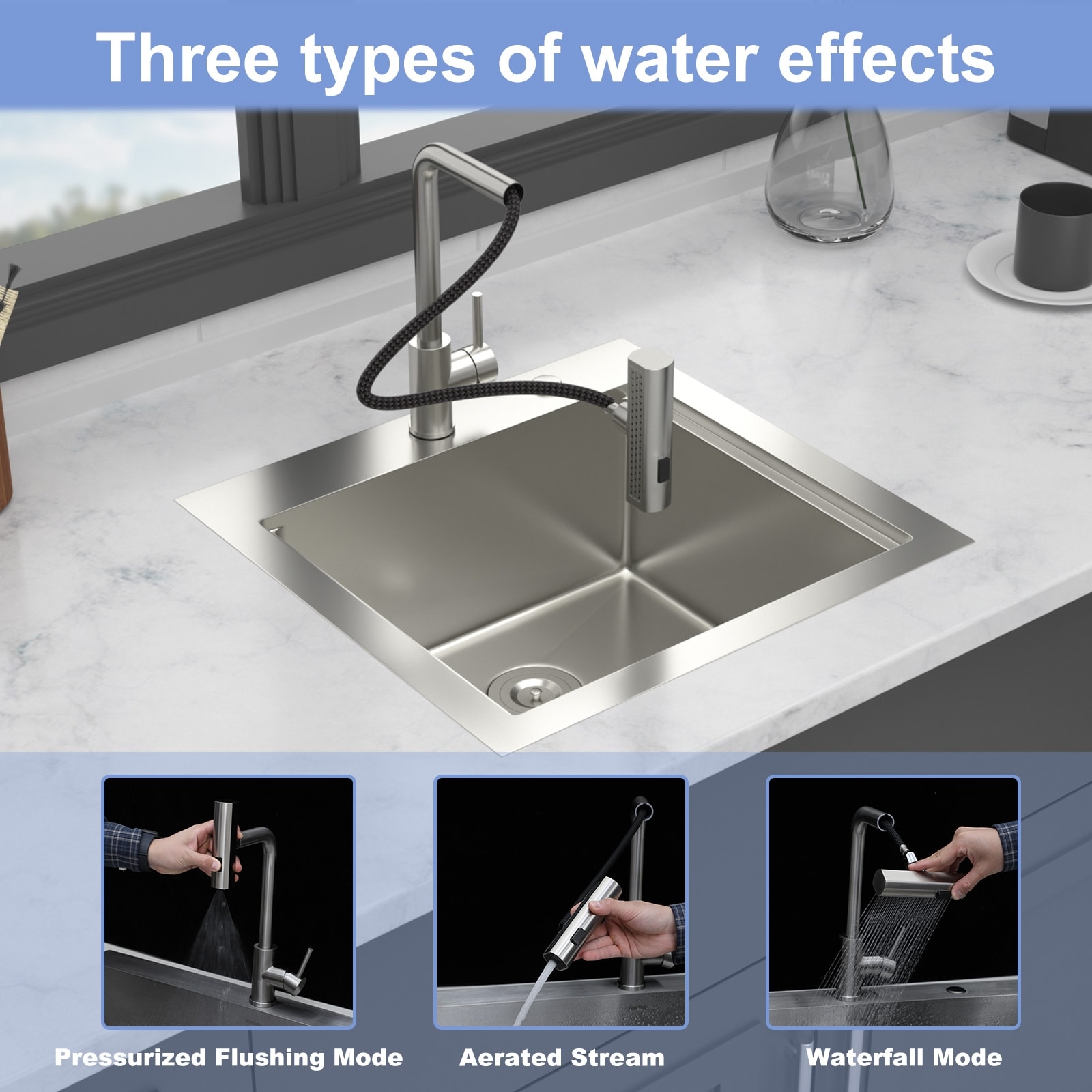 Drop in Kitchen Sink With Pull-out Faucet Stainless Steel