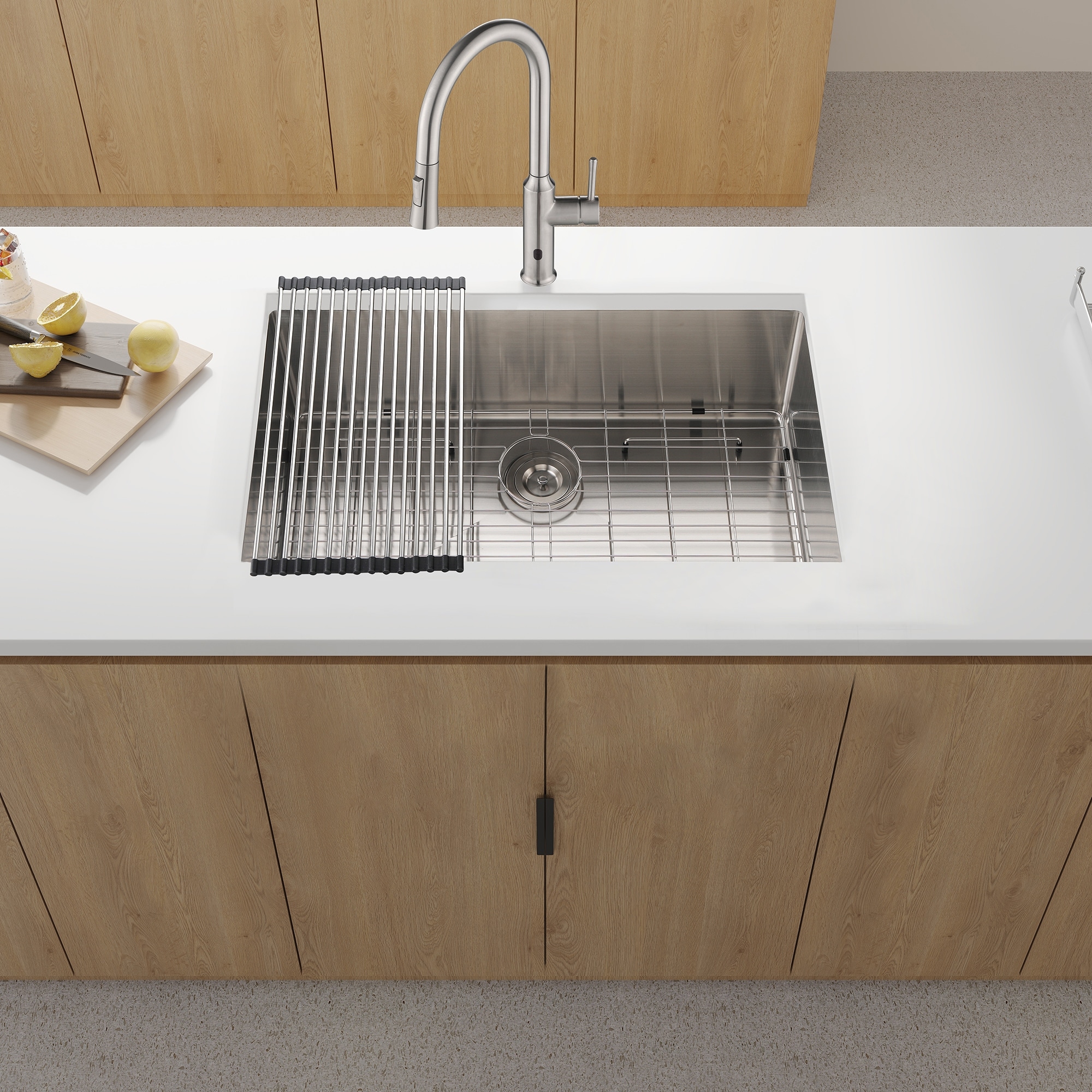 33" L X 20" W Single Basin Ceramic Farmhouse Kitchen Sink With Basket Strainer