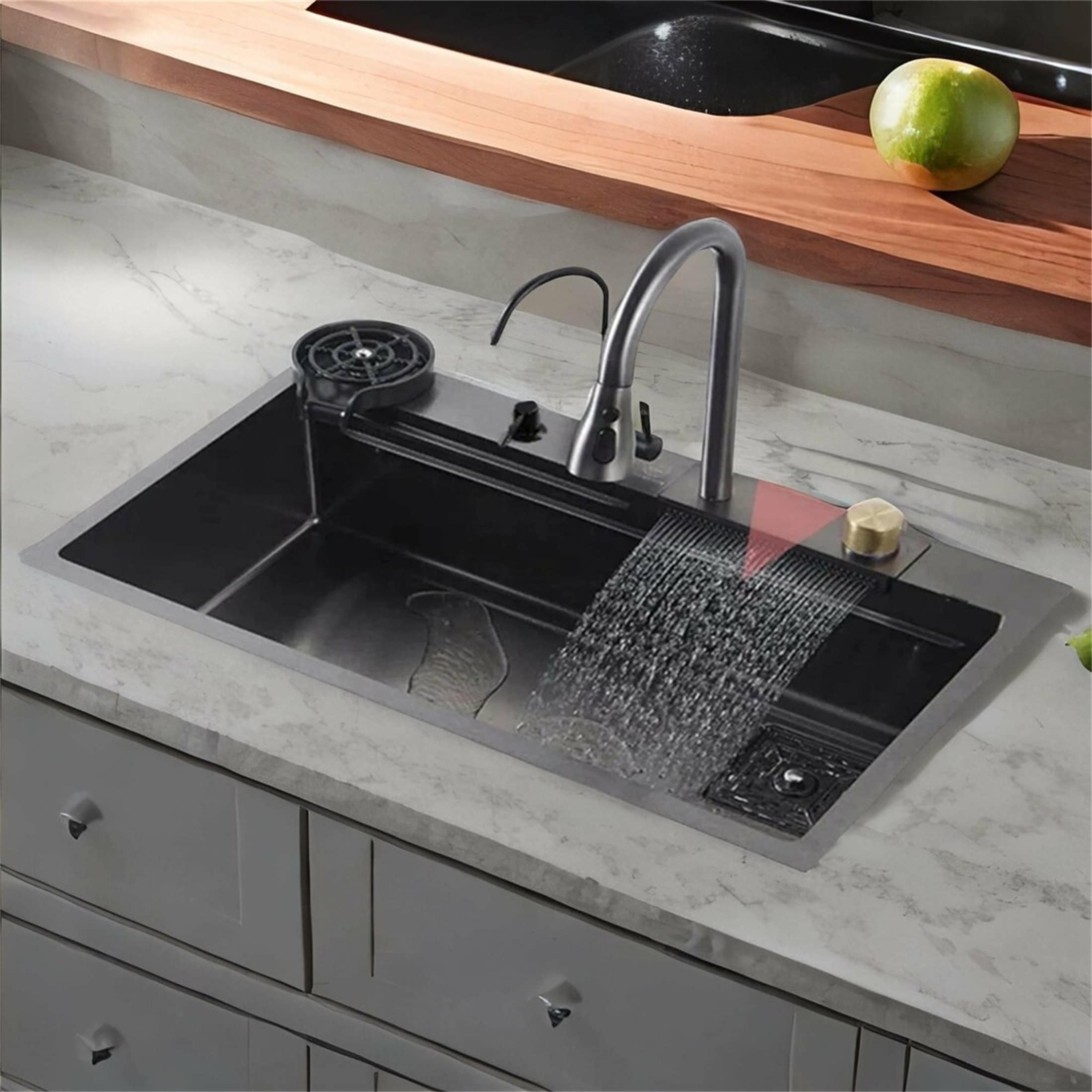 Single Bowl Stainless Steel Kitchen Sink with Waterfall Faucet