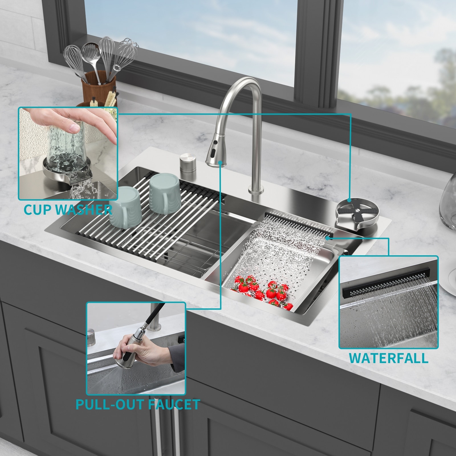 28 Inch Drop in Kitchen Sink Stainless Steel Workstation Sink
