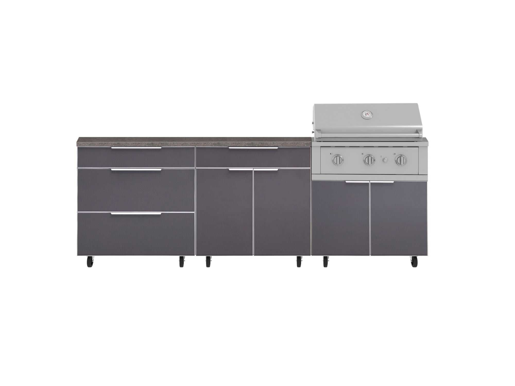 NewAge Outdoor Kitchens Aluminum 5-Piece Cabinet Set With Casters and 3 Drawer, Bar, Grill Cabinet, Performance Grill, Countertop