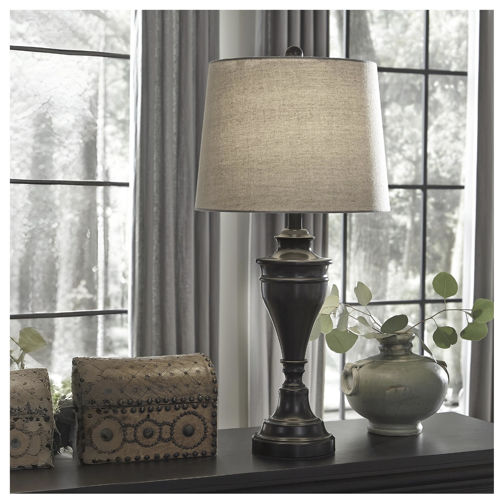 Signature Design by Ashley Jacek Grey Brass-tone and Black Table Lamp (Set of 2)