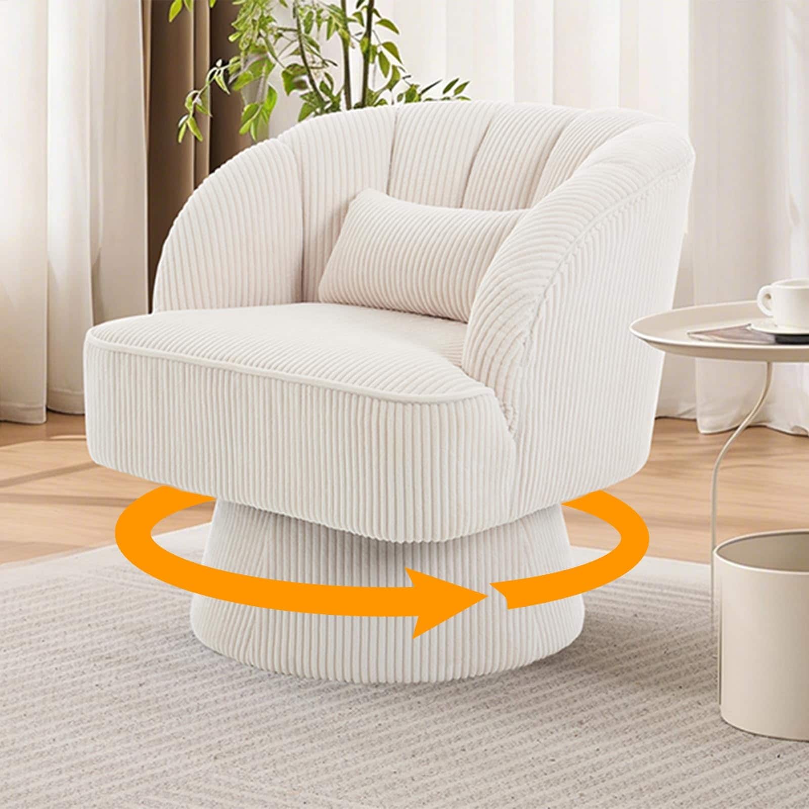 360° Swivel Barrel Chair, Accent Chair with Striped Backrest & Plush Padding