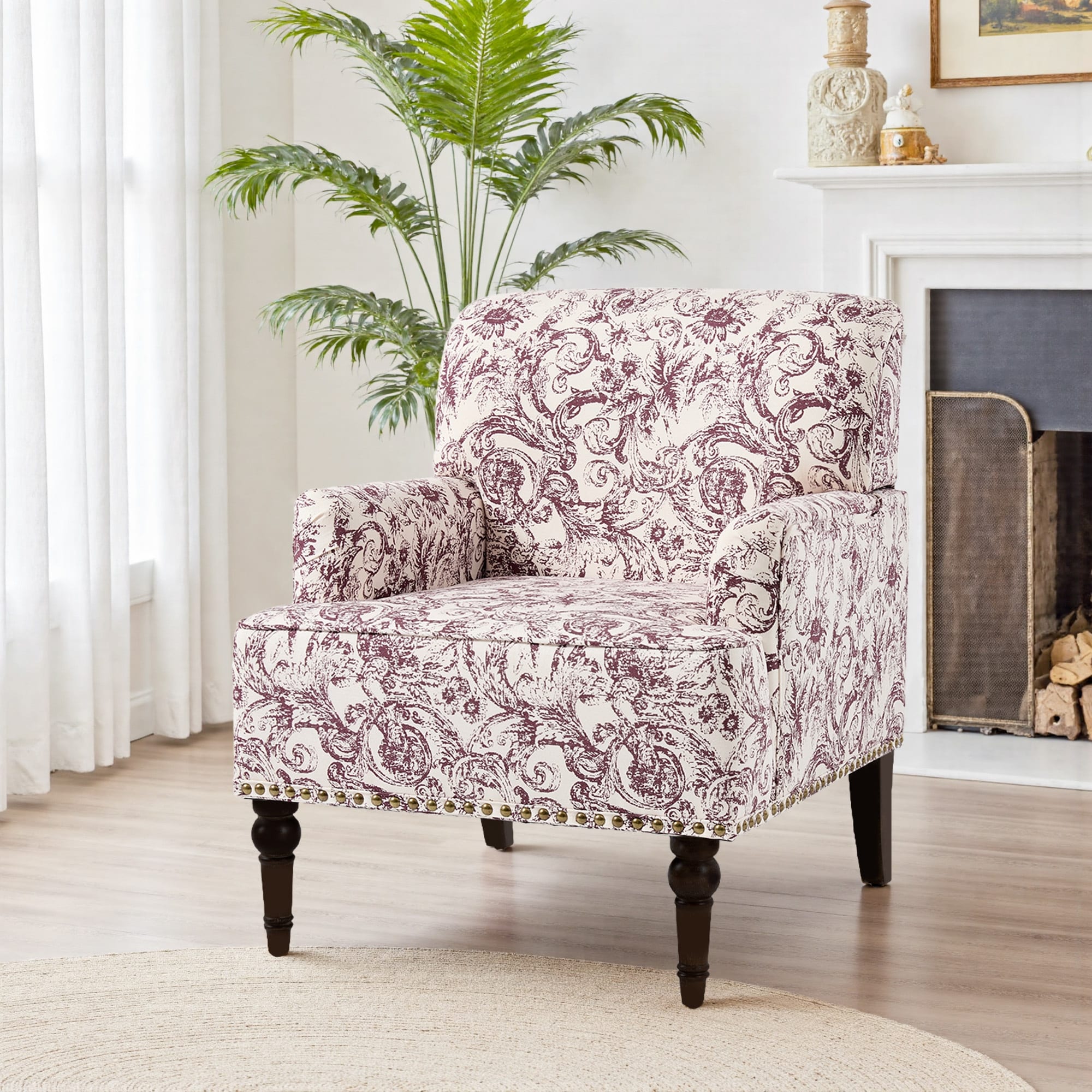 Linen Upholstered Armchair Nailhead Trim Accent Chair