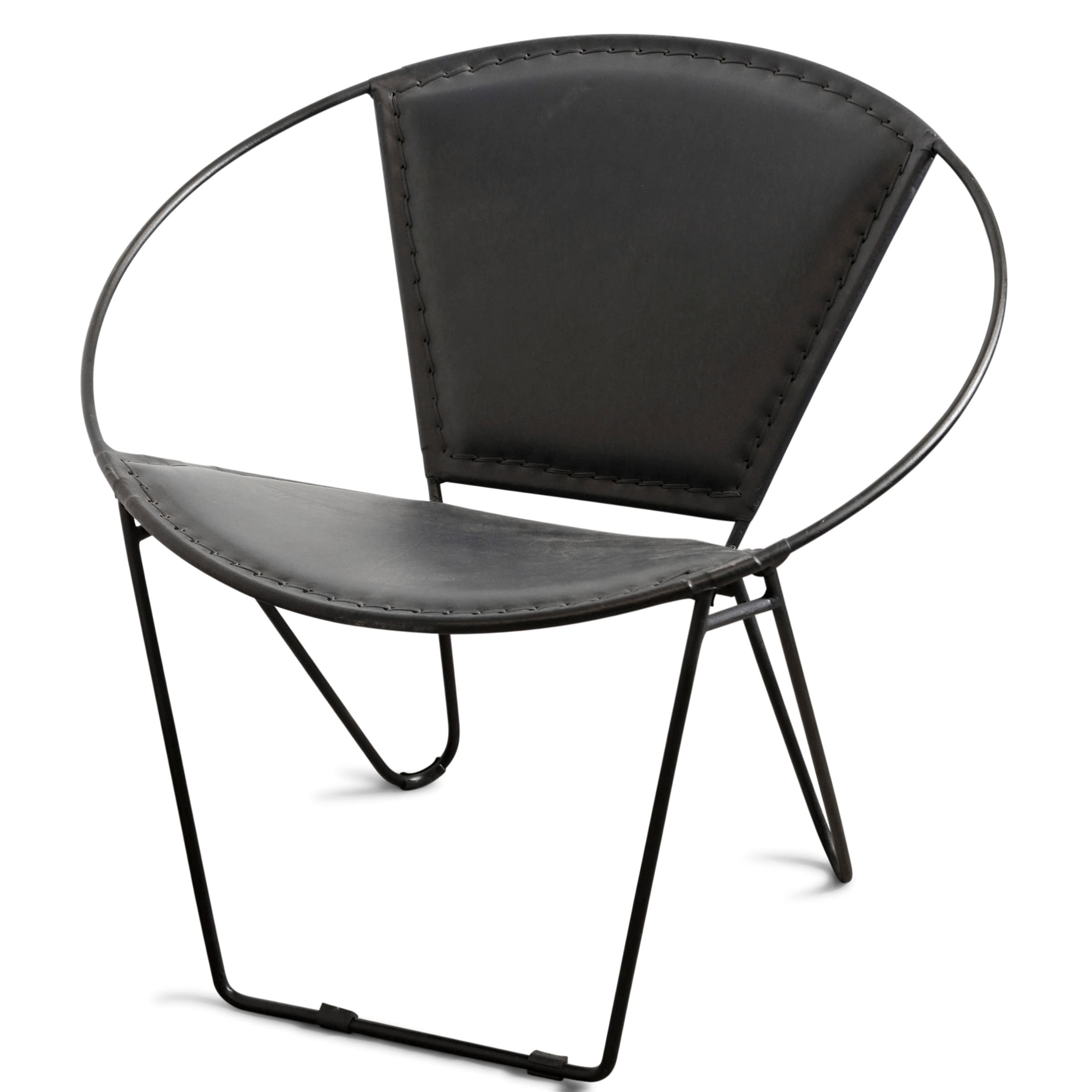 Genuine Leather Accent Chair With Fabric Tape Wrapped Arms for Living Room Lounge
