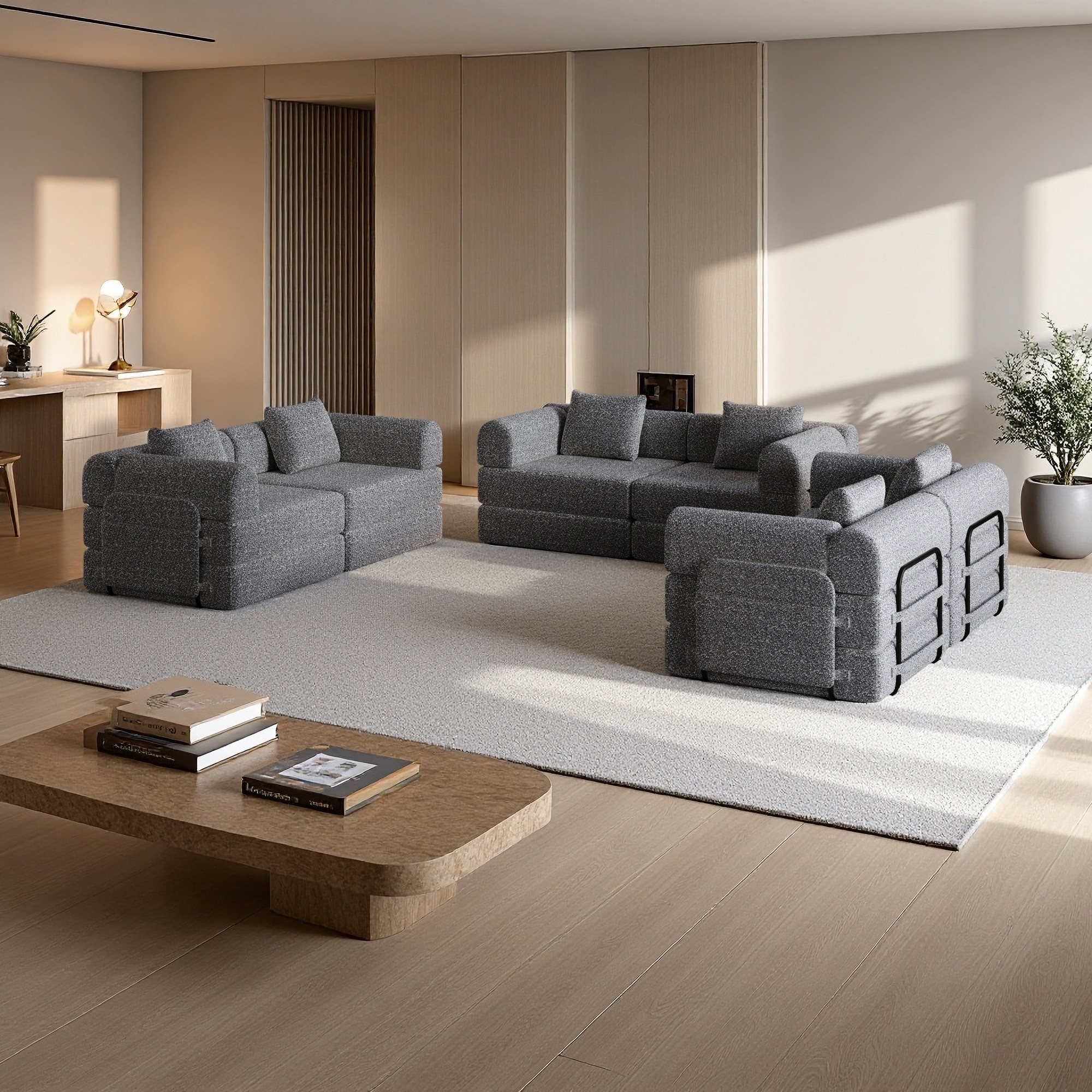 Fabric Convertible Sofa Bed Set with Storage Pockets (6-Seater)