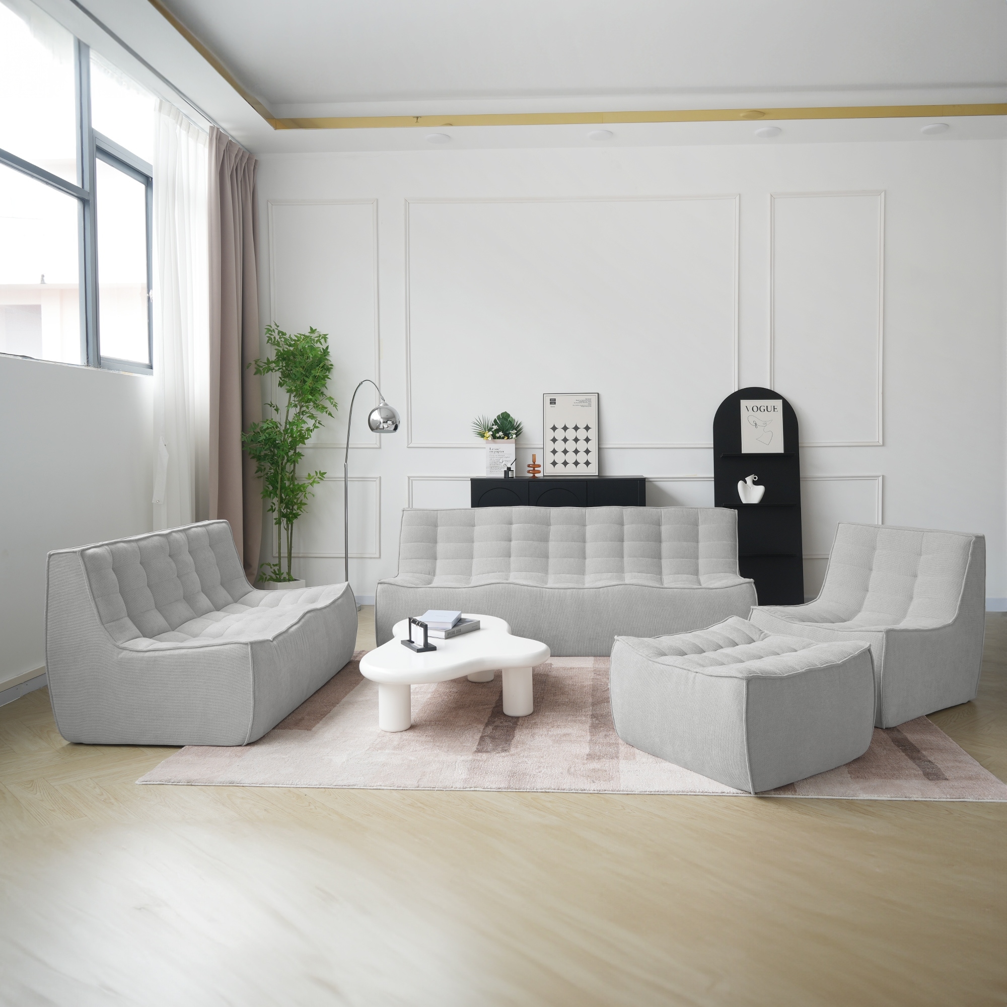 7-Seater Floor Sofa Set With Waffle Design For Comfort And Relaxation, Light-Grey Fabric