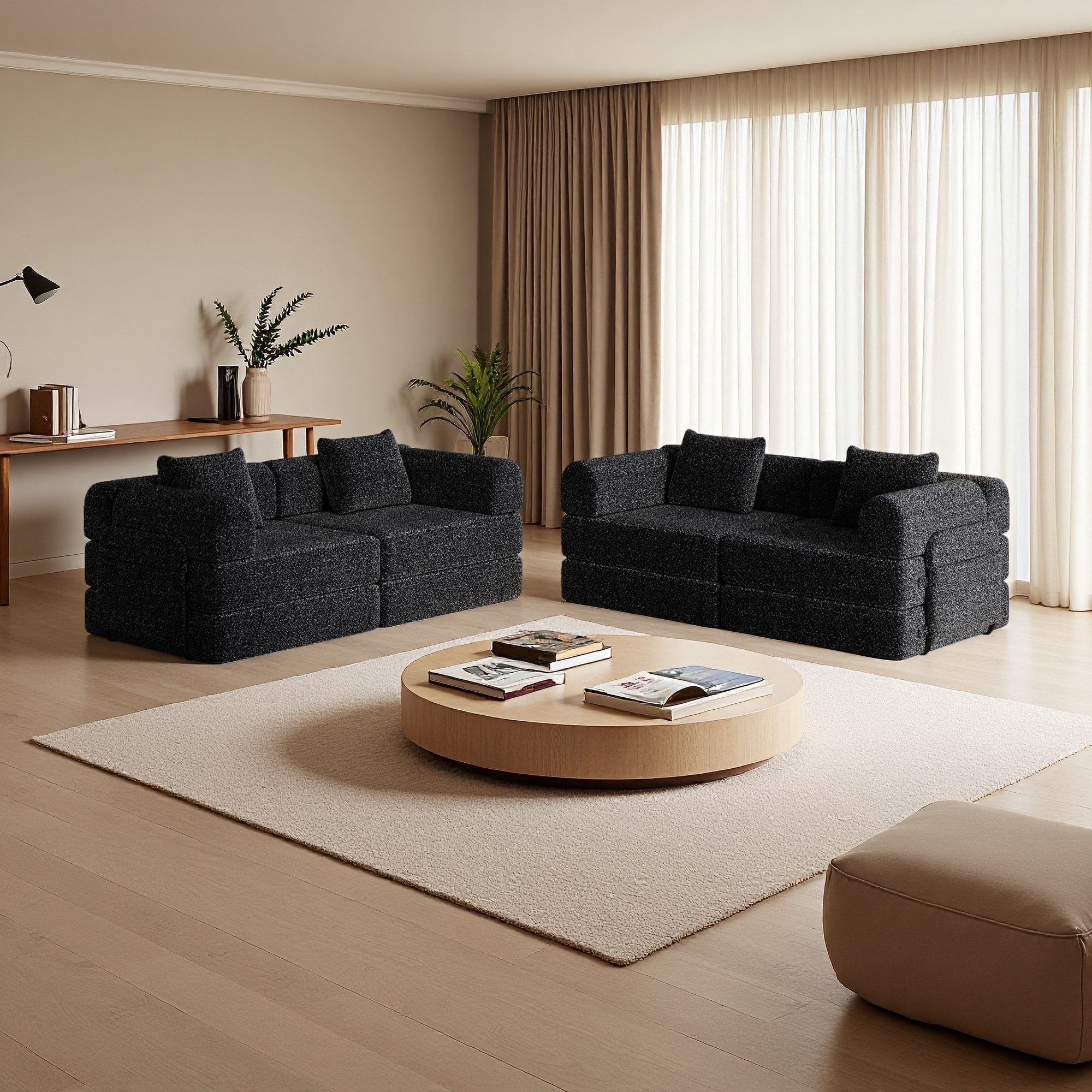 Fabric Convertible Sofa Bed Set with Storage Pockets (4-Seater)
